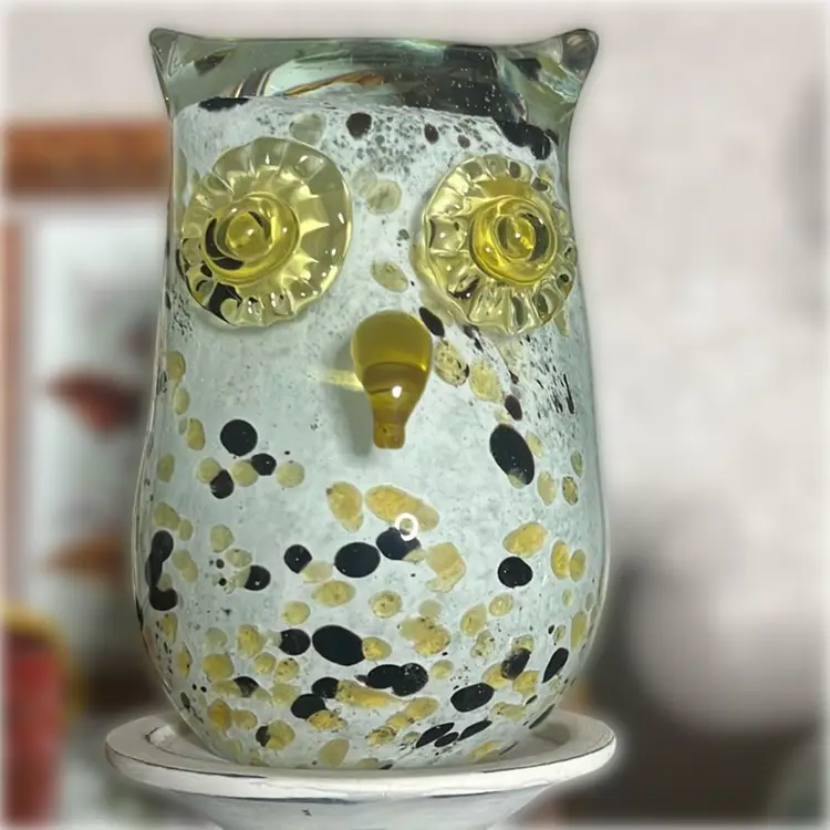 5.5”x4.5”Art Glass Hand Blown Glass Owl Paperweight Decor