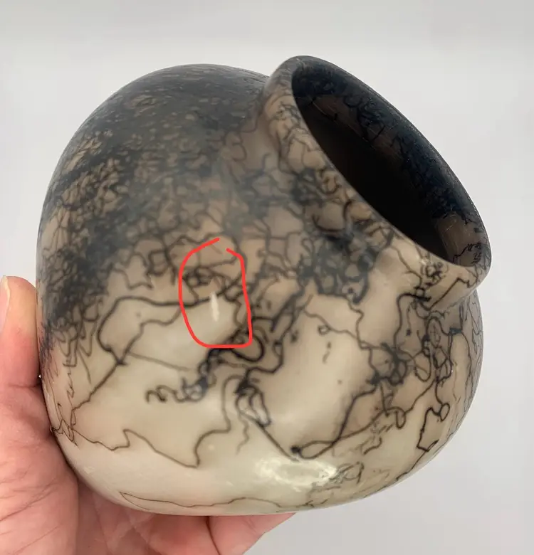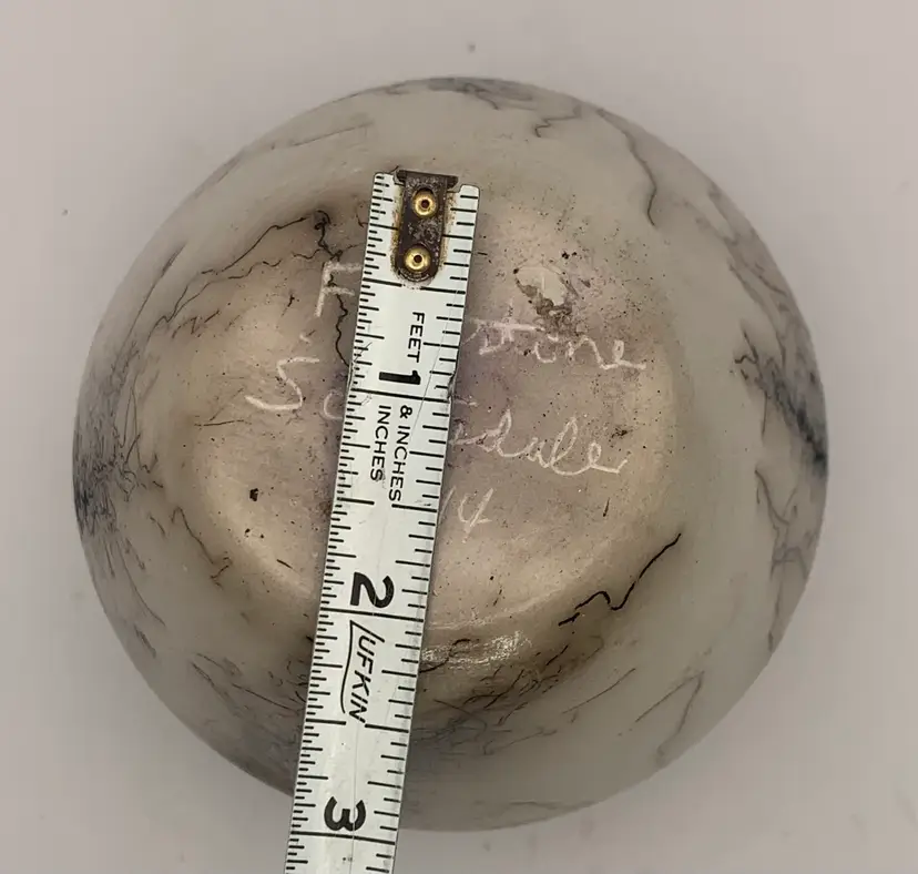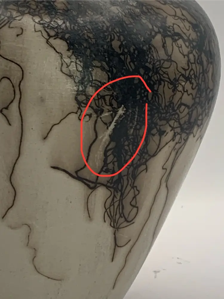 There are two surface scratches. No chips, cracks or repairs. Please see all photos for details and measurements. I am happy to answer any questions. Thank you for checking out my listings.