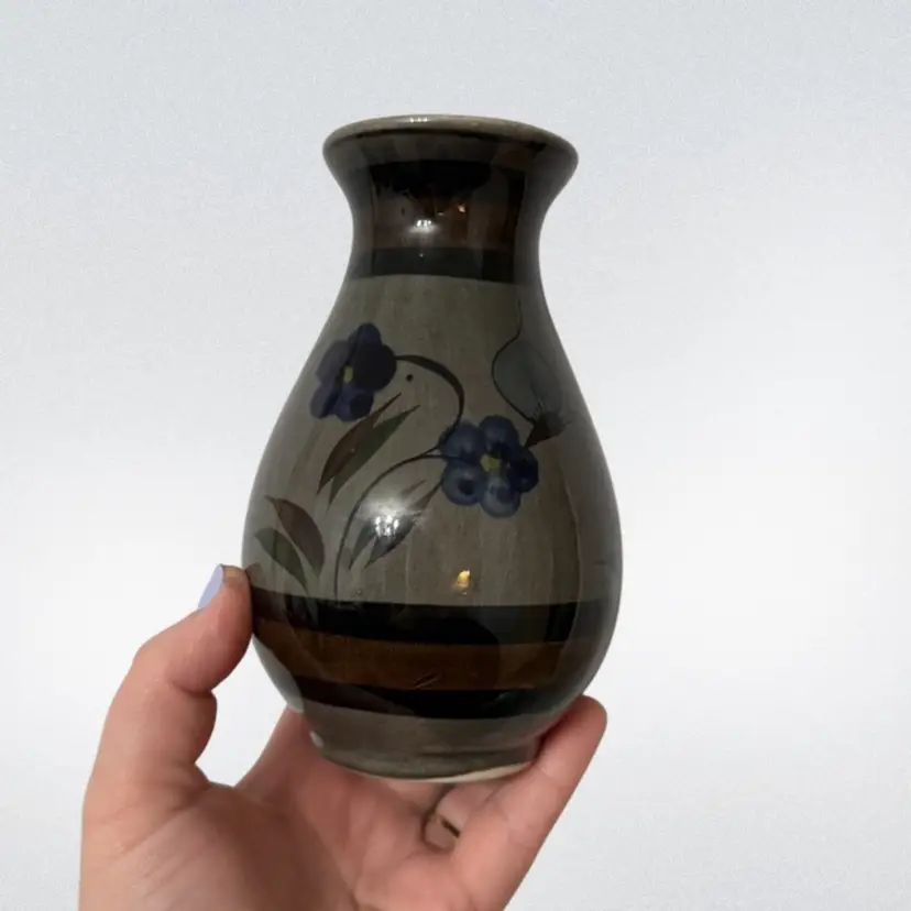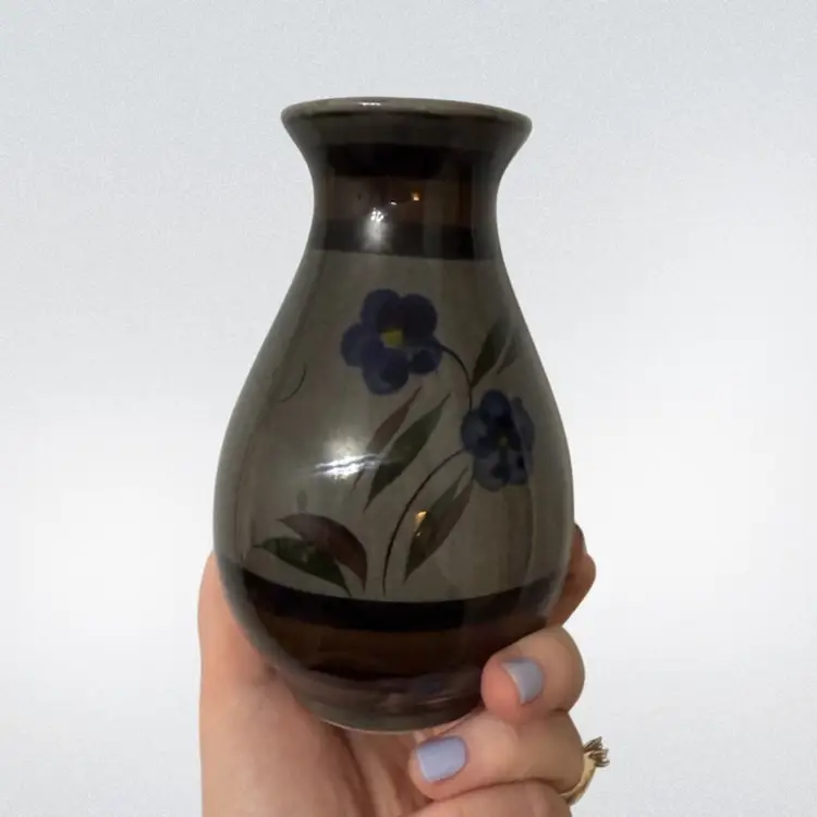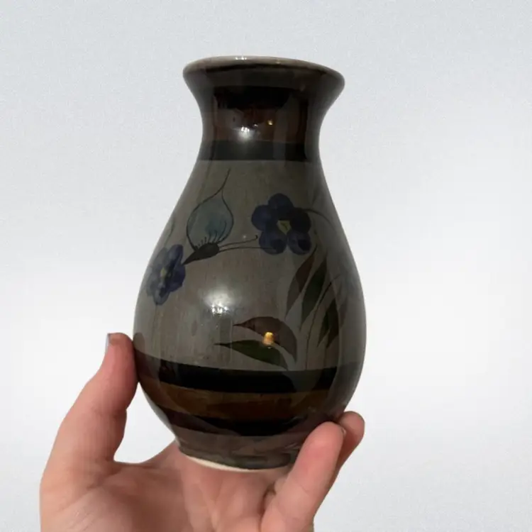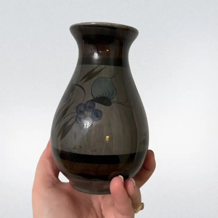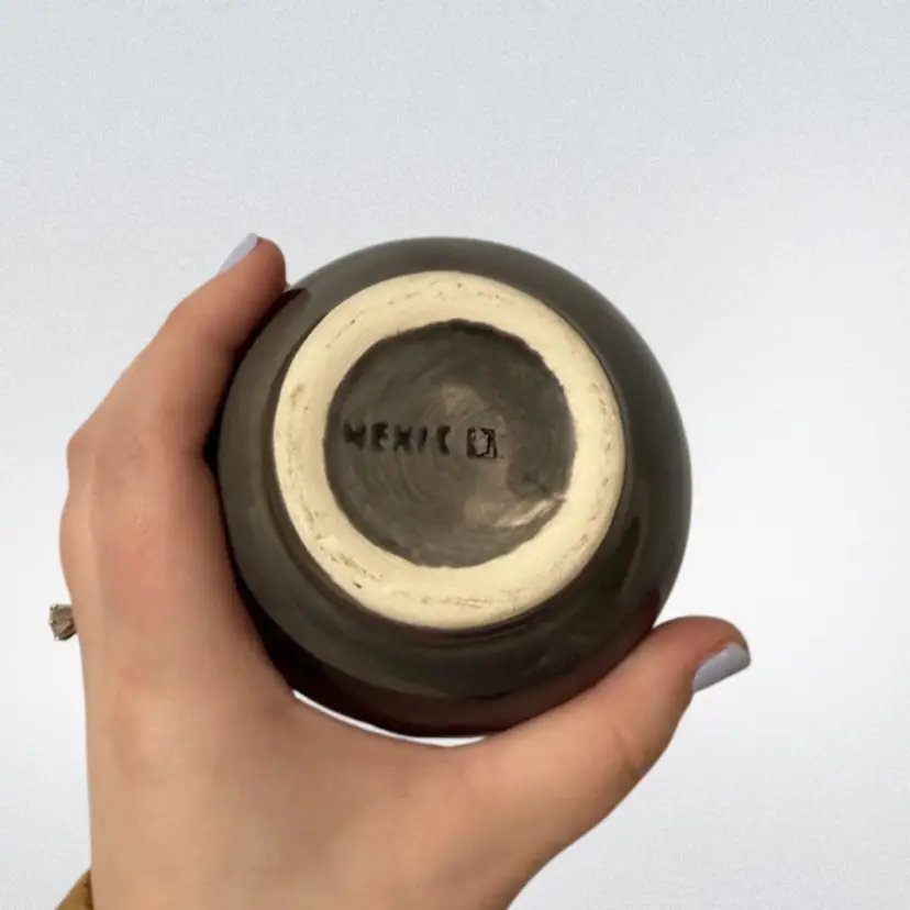 About 5.75in tall- good vintage condition. Features cute flowers and butterflies. Stamped Mexico on the bottom.