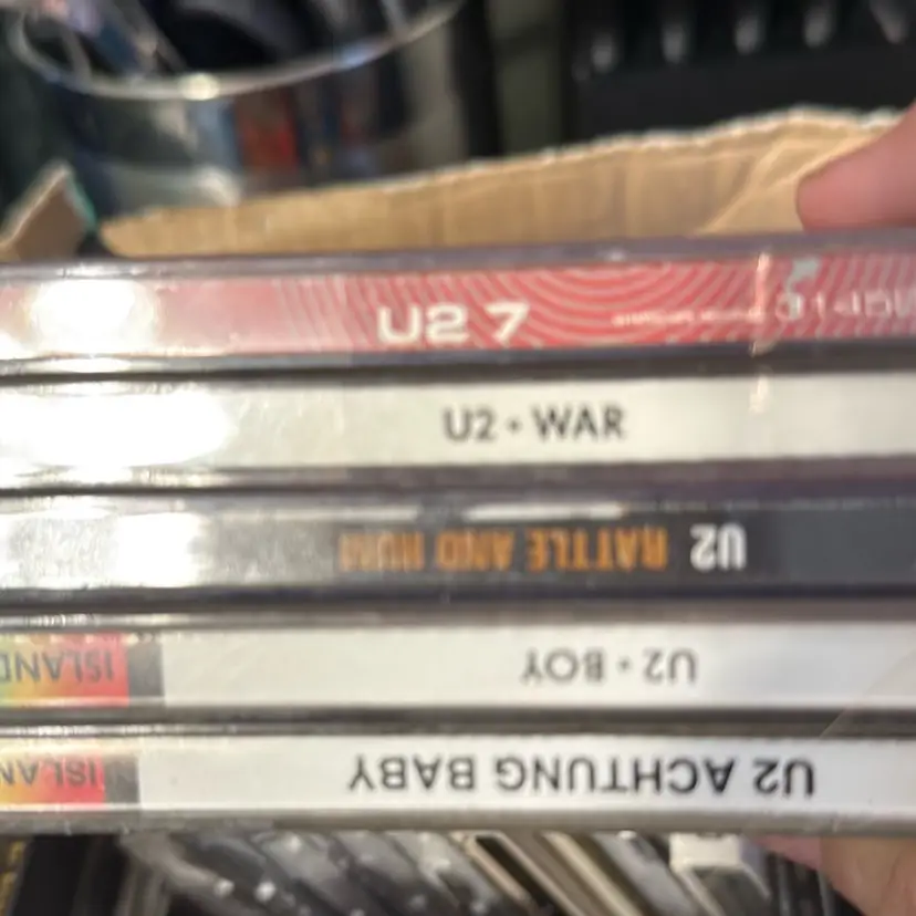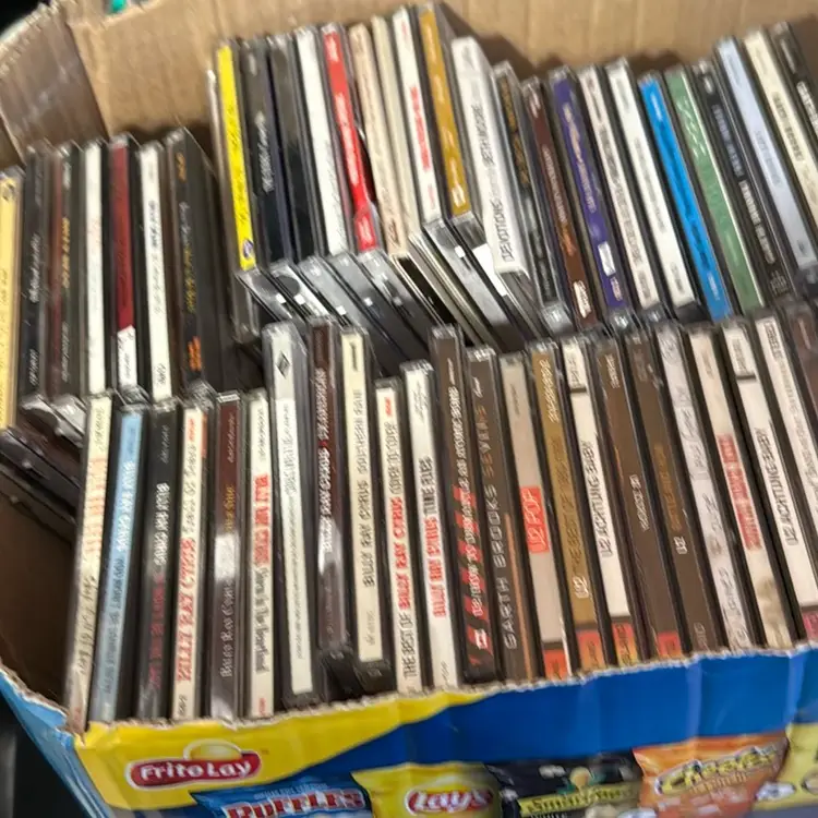 A box of CDs one is Adam Sandler stand up. The rest are listed or a surprise. The box is sold as a lot There are 59.