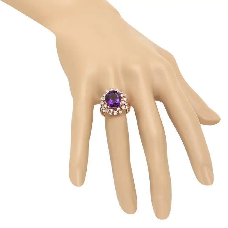Country/Region of Manufacture: United States Main Stone Color: Violet Main Stone Treatment: Not Enhanced Metal Purity: 14k Main Stone: Amethyst Sizable: Yes Main Stone Creation: Natural Metal: Rose Gold Ring Size: 6.5 Total Carat Weight (TCW): 6.00 Main Stone Shape: Oval Brand: Unbranded Type: Ring