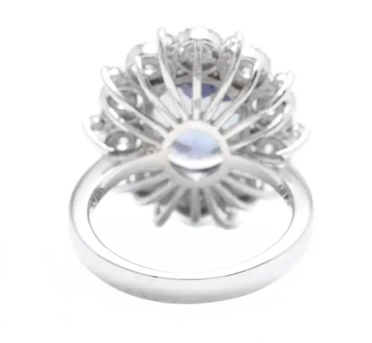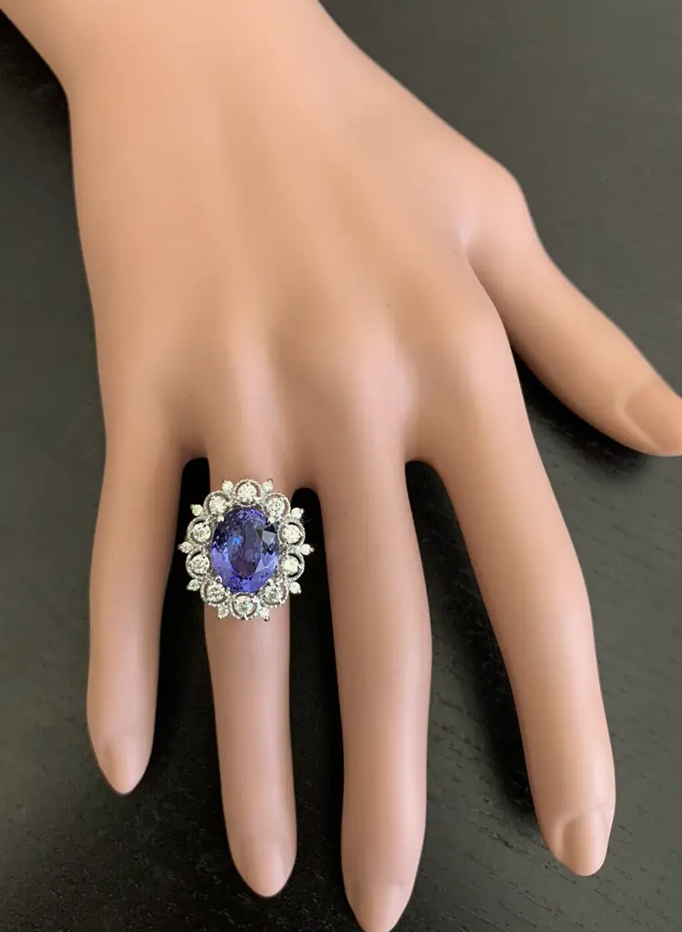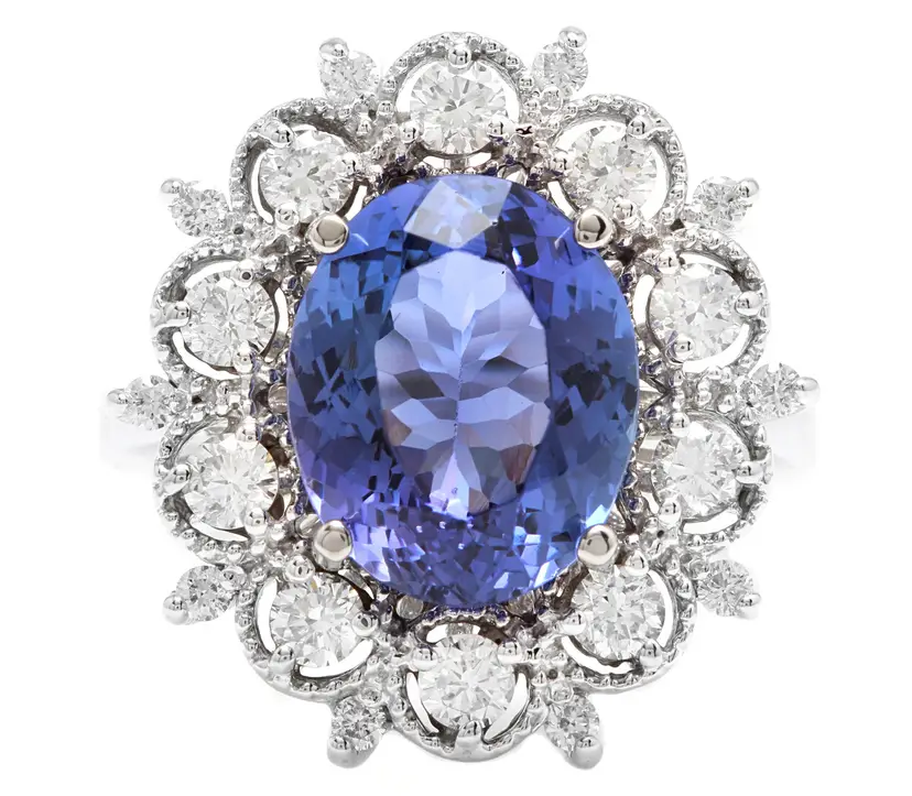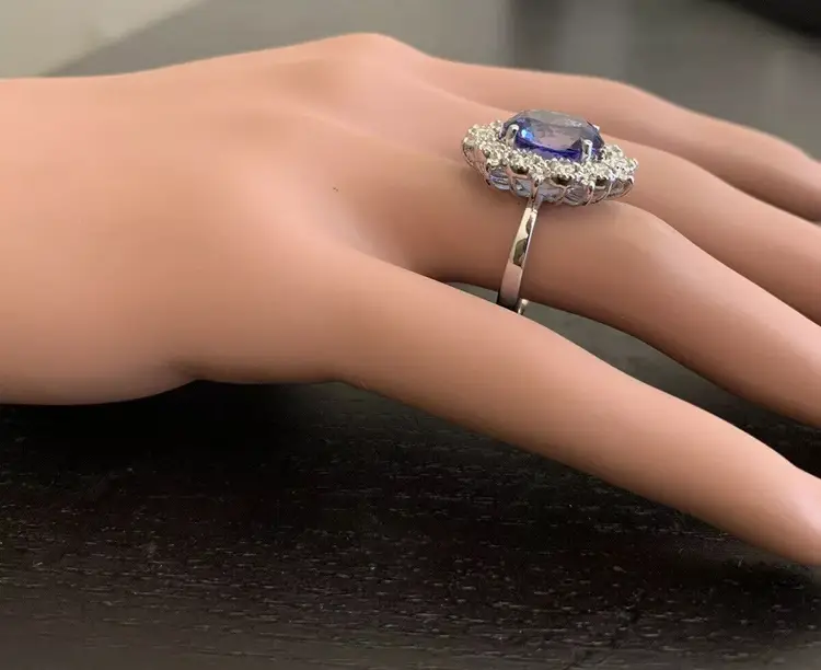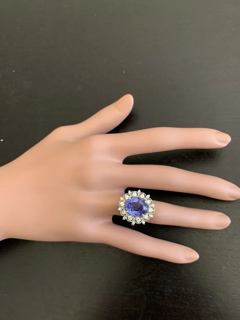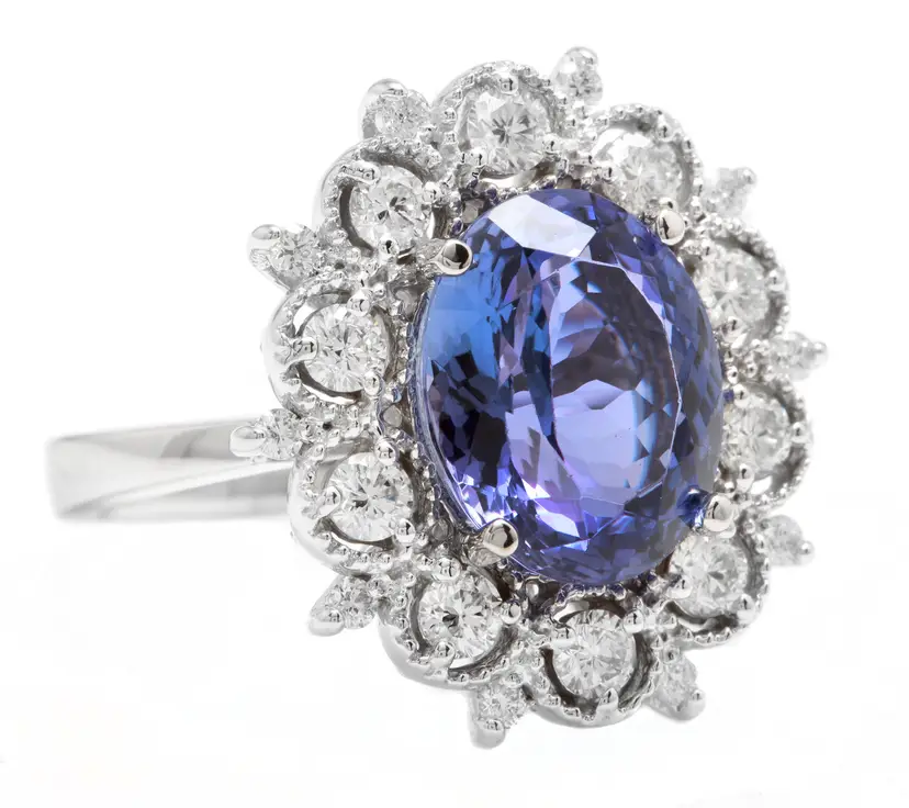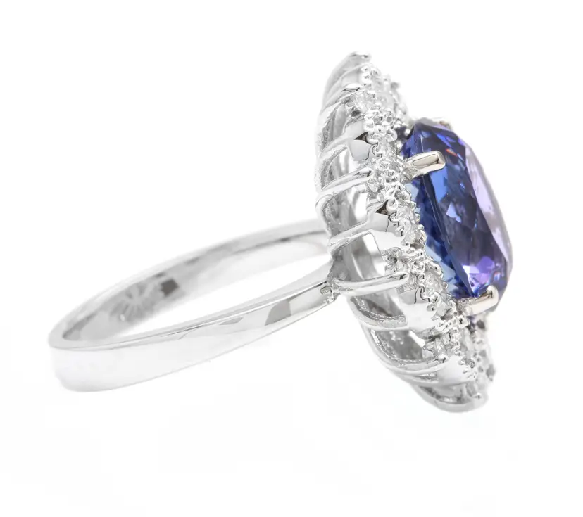 Main Stone Creation: Natural Metal Purity: 14k Style: With Diamonds & Gemstones Metal: White Gold Secondary Stone: Tanzanite Main Stone: Tanzanite Total Carat Weight (TCW): 6.30 Main Stone Treatment: Heating Sizable: Yes Main Stone Shape: Oval Ring Size: 6 Main Stone Color: Bluish Violet Brand: Unbranded Type: Ring