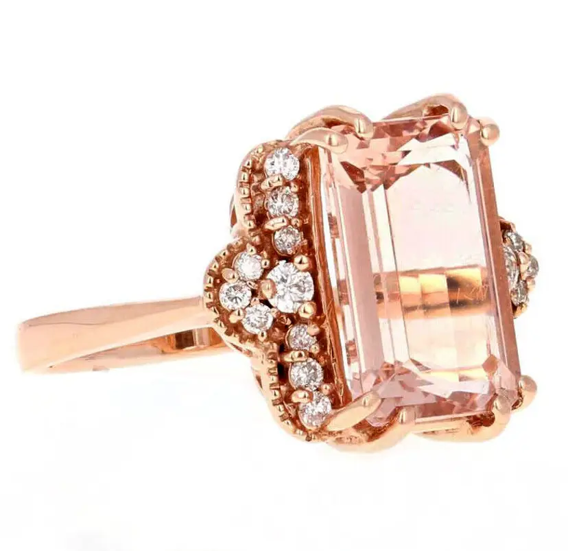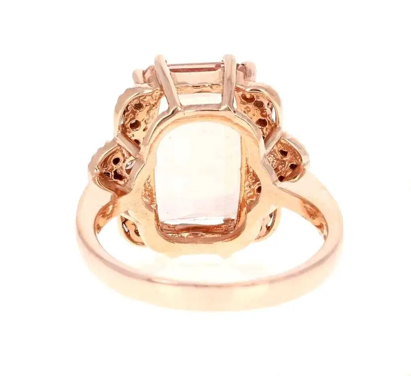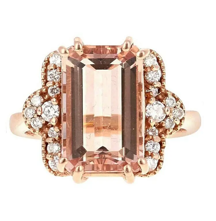 Country/Region of Manufacture: United States Main Stone Color: Peach Main Stone Treatment: Heating Metal Purity: 14k Main Stone: Morganite Sizable: Yes Main Stone Creation: Natural Metal: Rose Gold Ring Size: 7 Total Carat Weight (TCW): 6.35 Main Stone Shape: Oval Brand: Unbranded Type: Ring