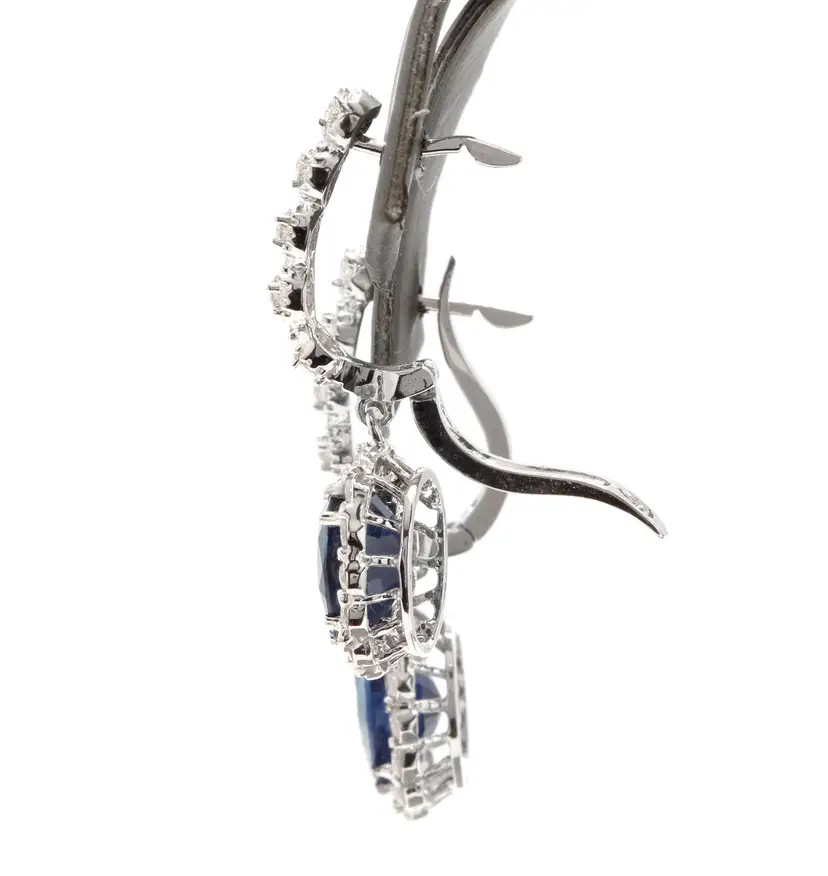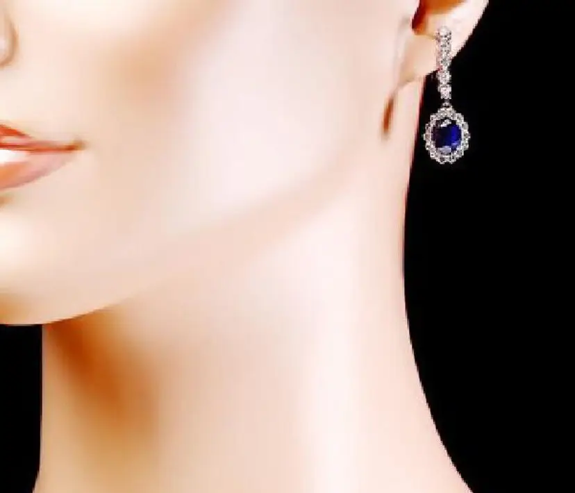 Total Carat Weight (TCW): 5.70 Type: Earrings Main Stone Color: Blue Brand: Unbranded Main Stone Shape: Oval Style: Drop/Dangle Material: Gemstone Main Stone Treatment: Diffusion Metal Purity: 14k solid gold Main Stone: Sapphire Main Stone Creation: Treated Metal: White Gold