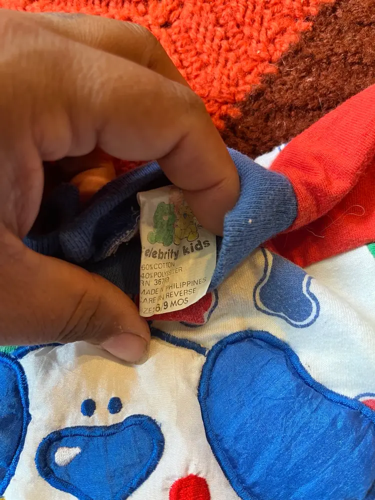 True to size, tag reads 6/9 months, may even fit up to 12m.