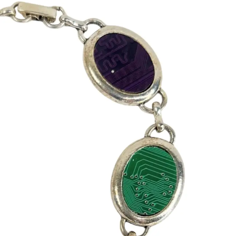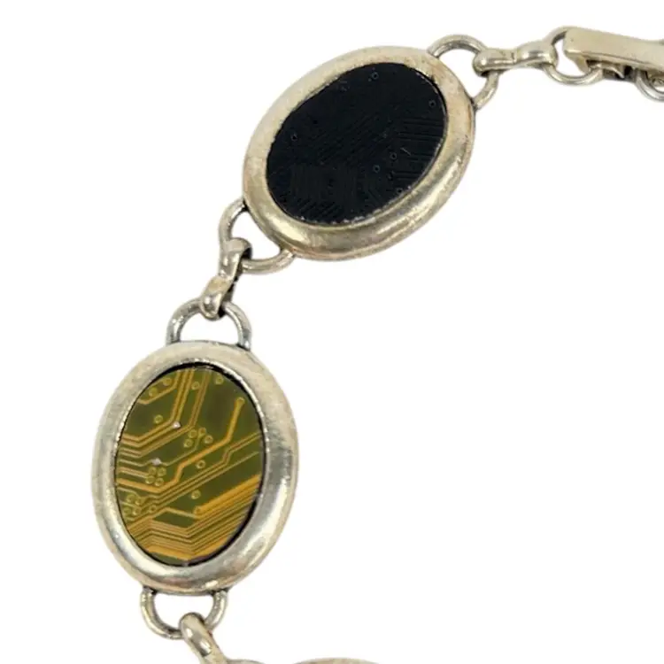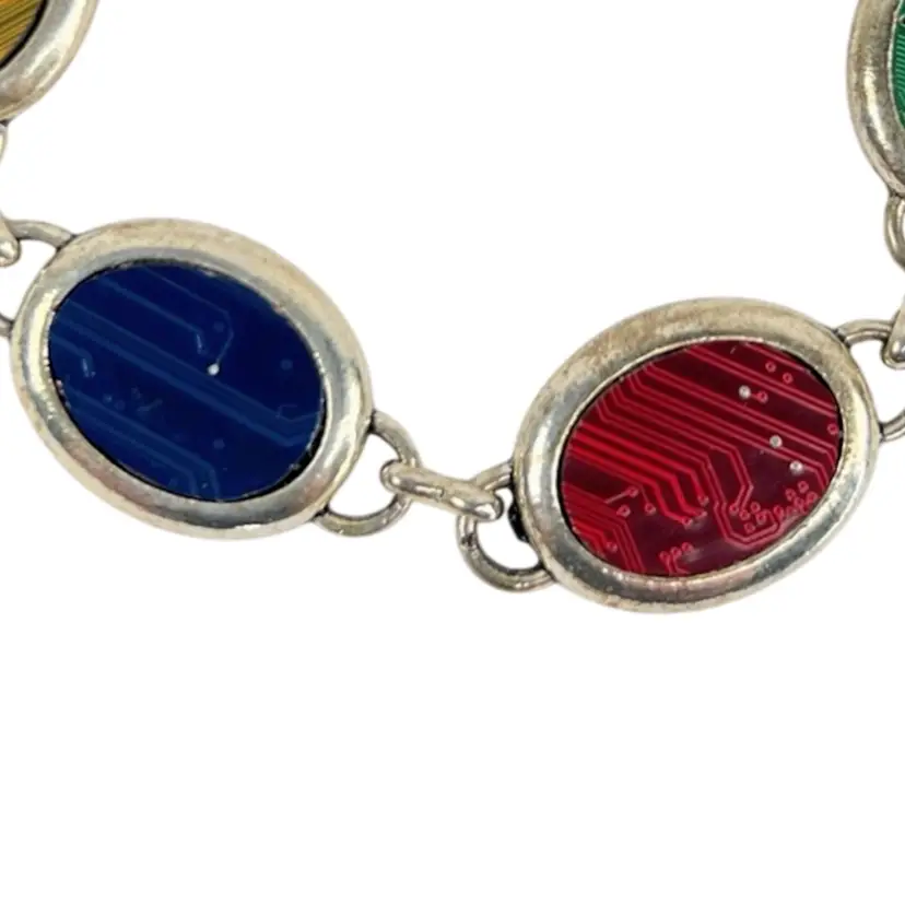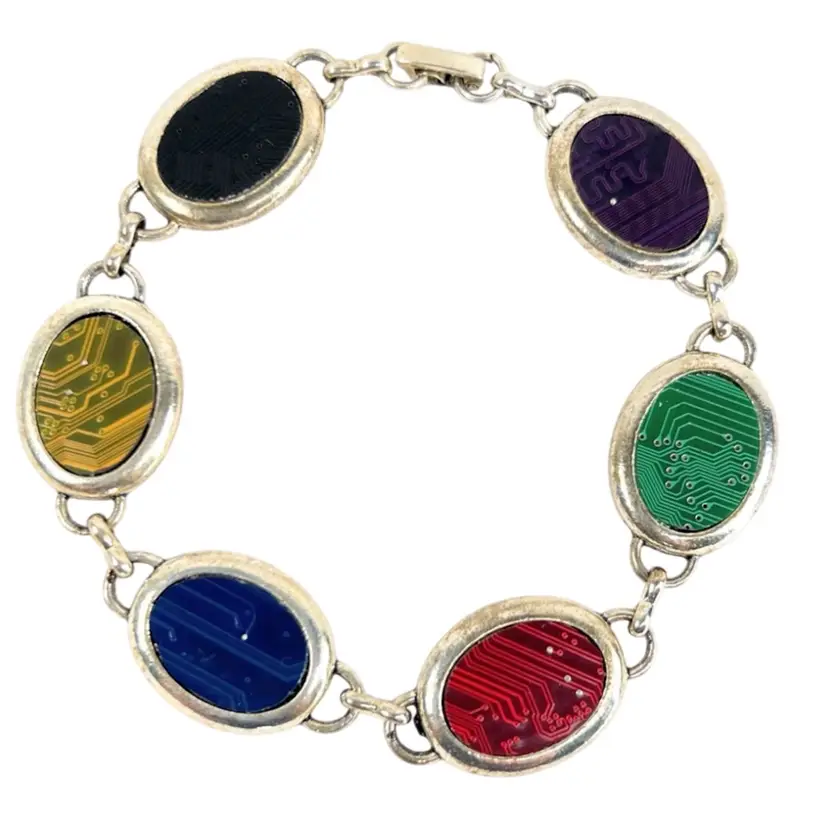 6-Color Circuitboard Bracelet Black, Gold, Blue, Red, Green, Purple Silver-tone Metal 8-1/2ā Handmade by Me! š«¶ Recycled E-waste