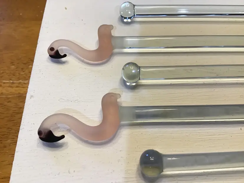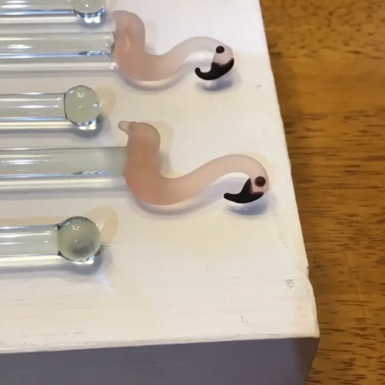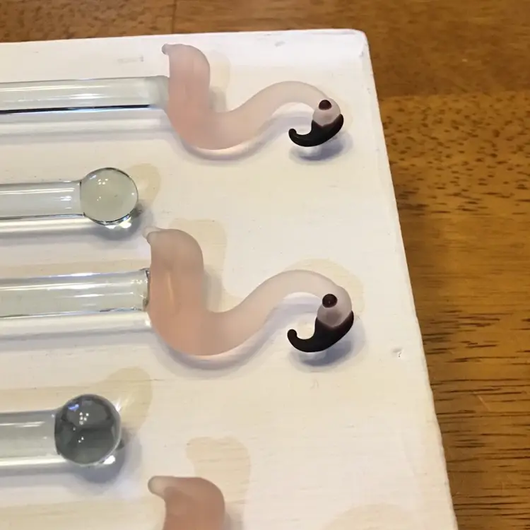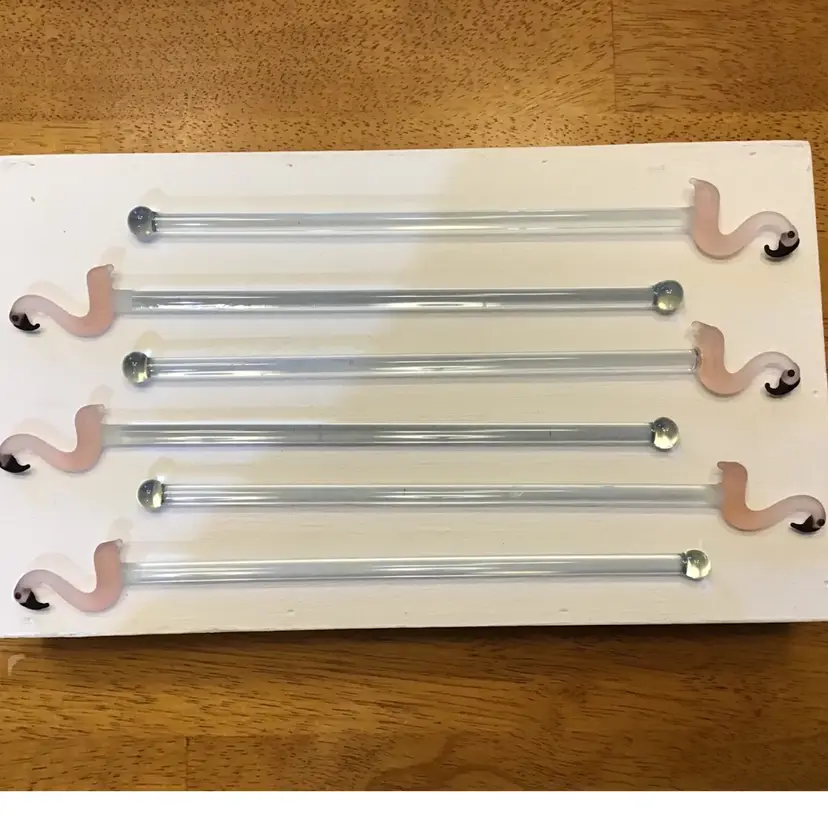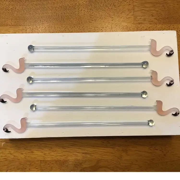 Six super cute flamingo drink stirrers are in excellent condition. No chips, cracks, or repairs. See all pictures as they are an important part of the description.