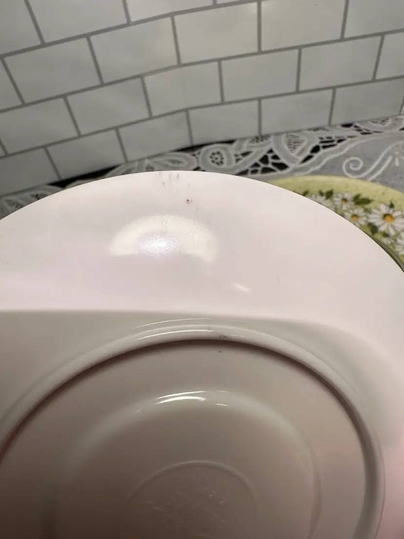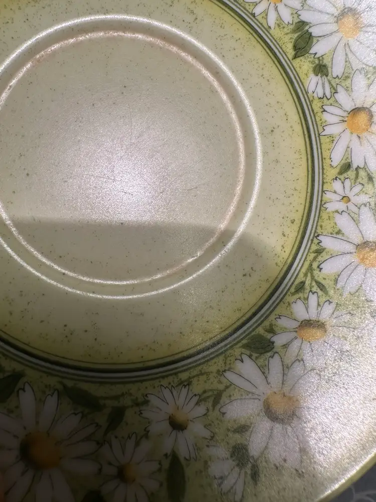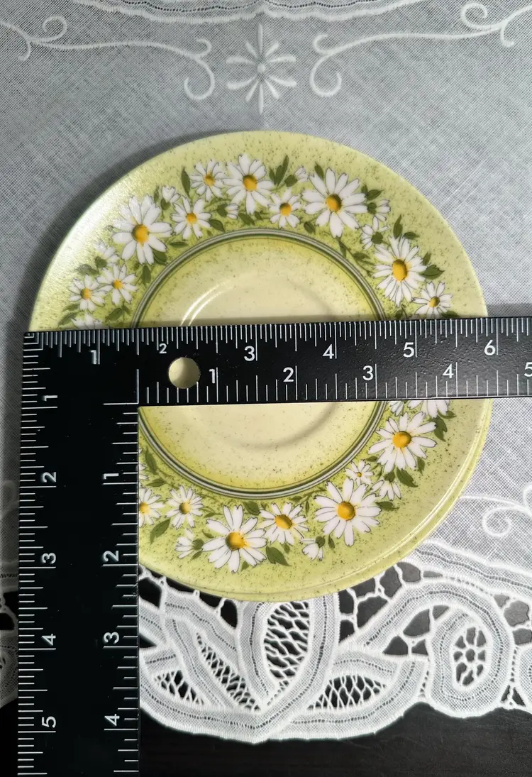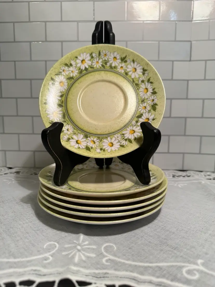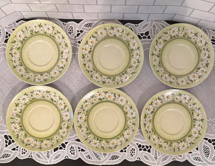 There are 6 (6 inch) saucers in this set. Three show minimal wear; three has staining and scratches. Please refer to pictures for condition.