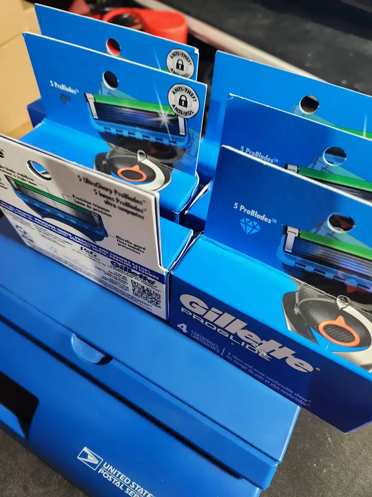 6 Packs of Gillette ProGlide 4 Piece Boxes. New Old Stock Box 8x6x4 12 Oz