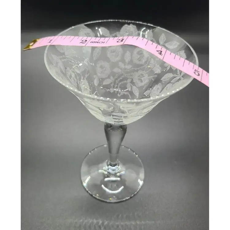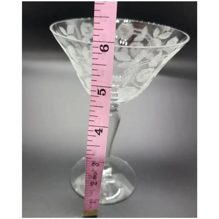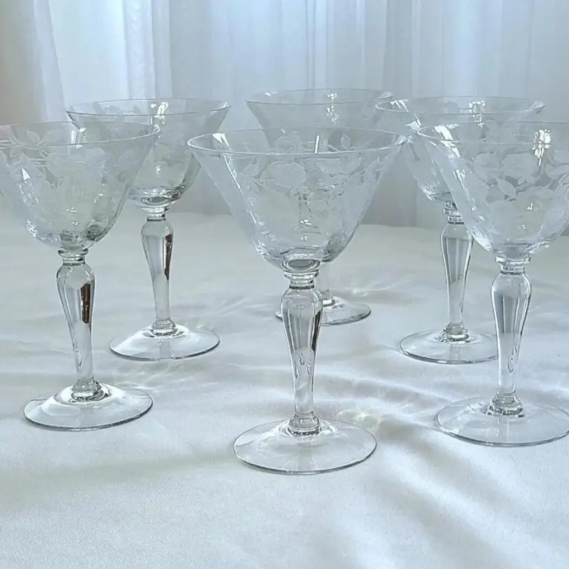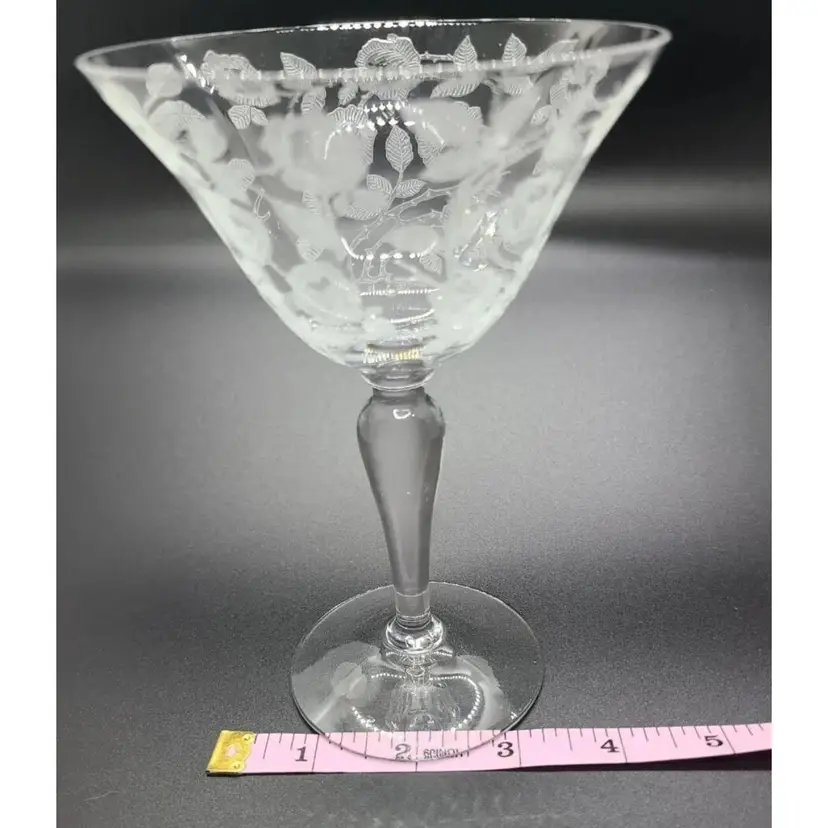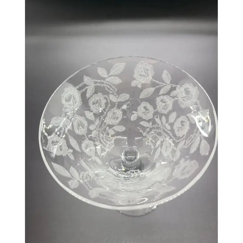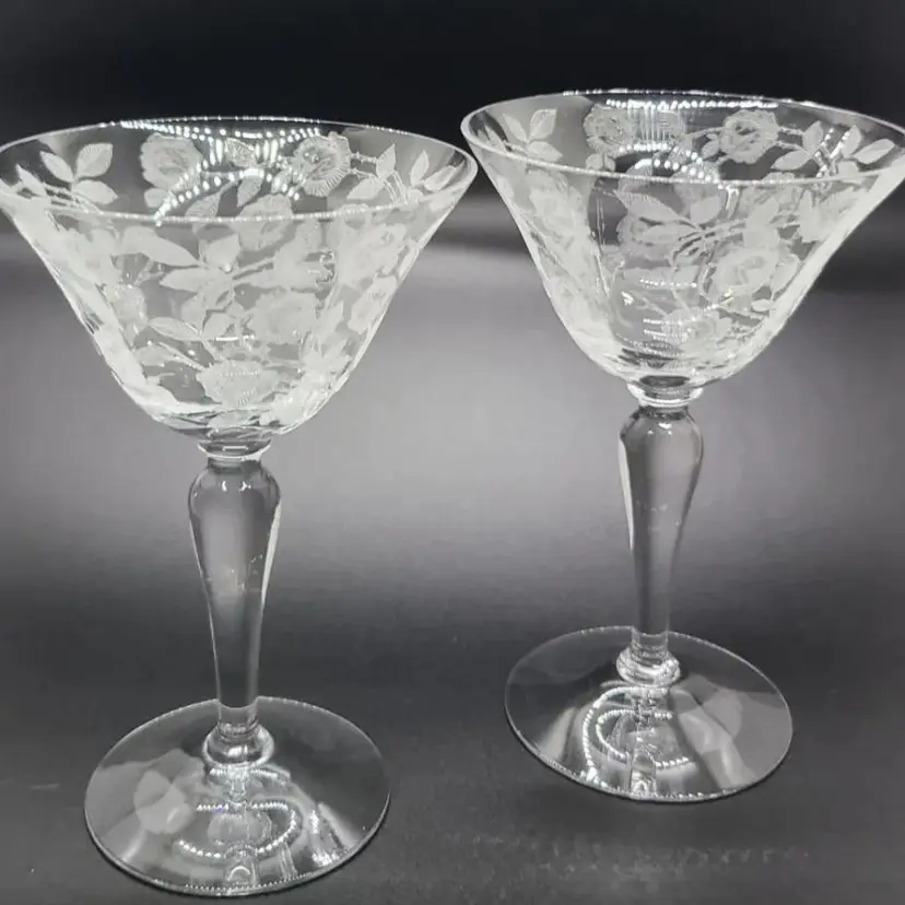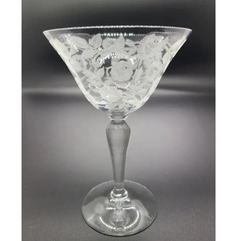 Elegant Rose Marie Champagne / Tall Sherbet Etched Crystal Glasses by Cambridge