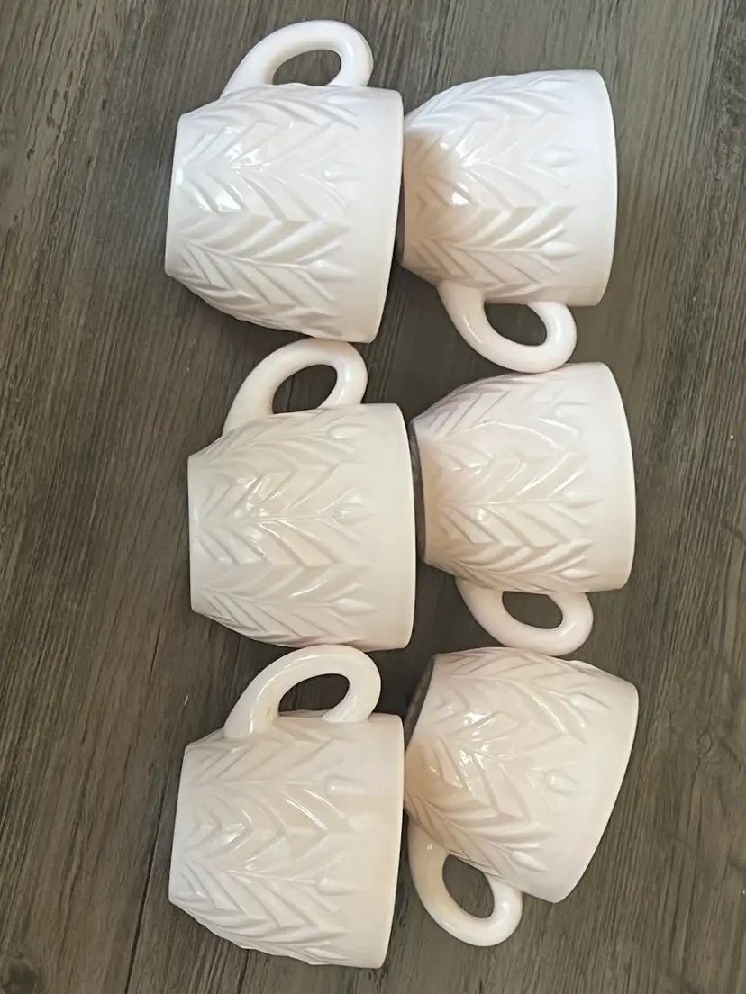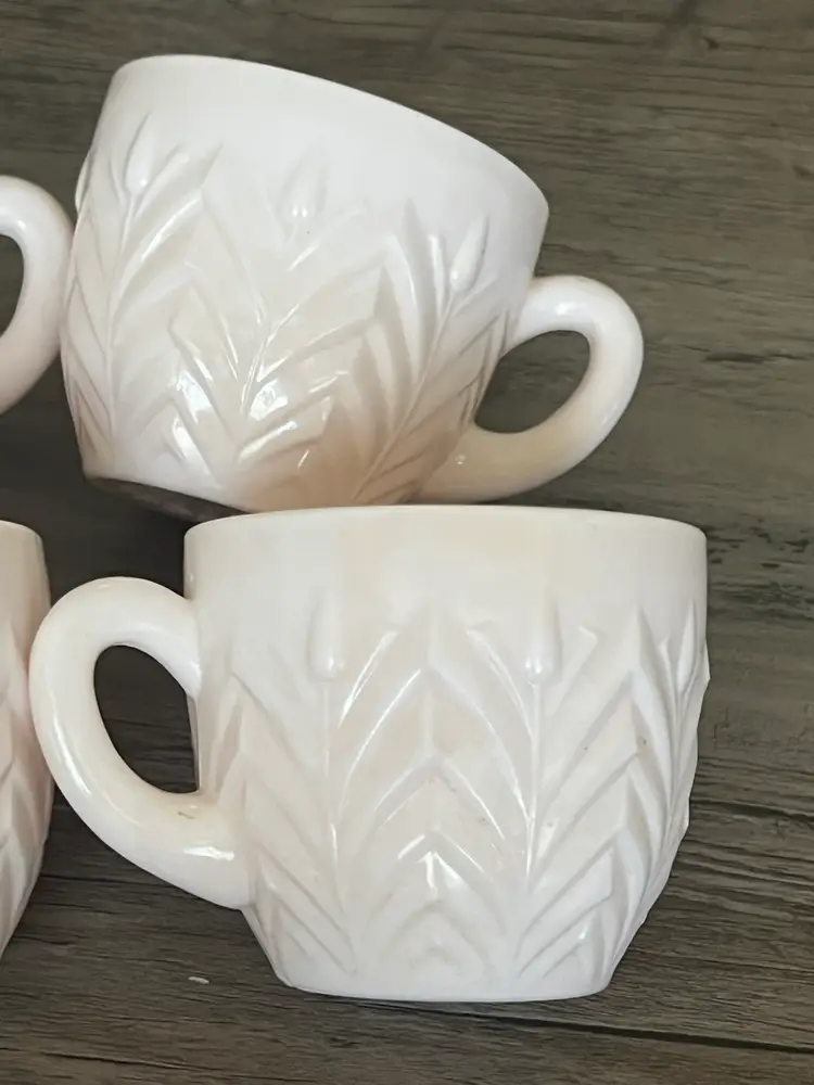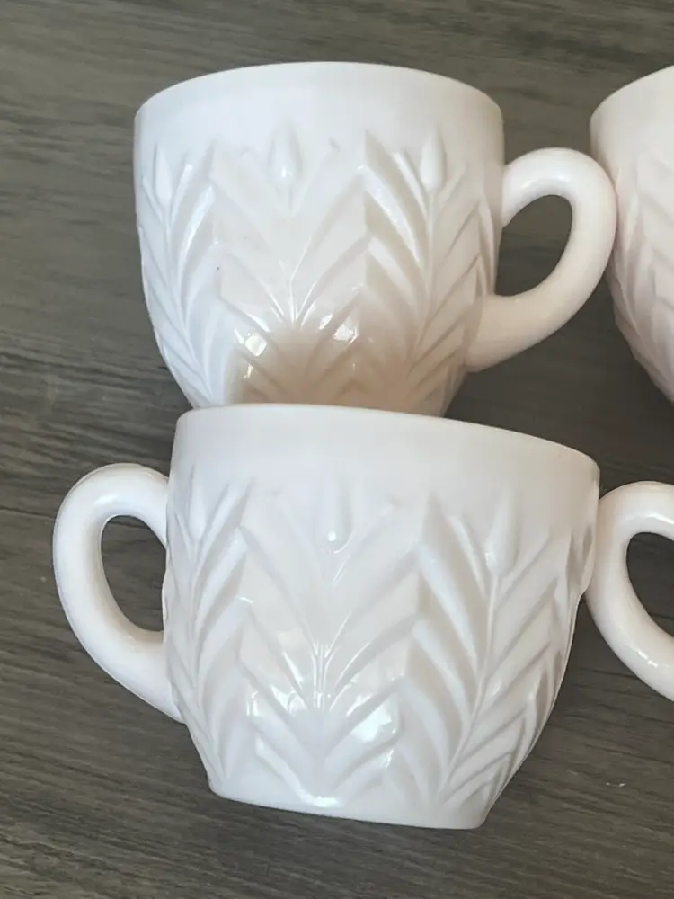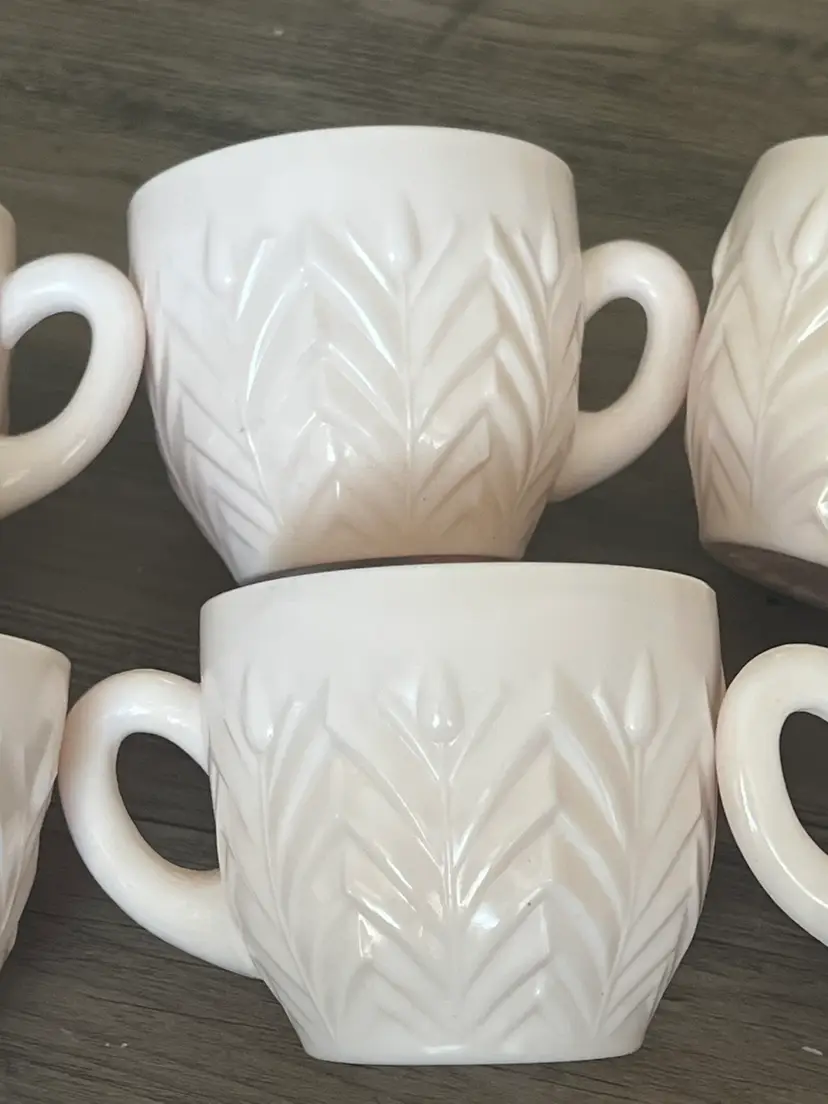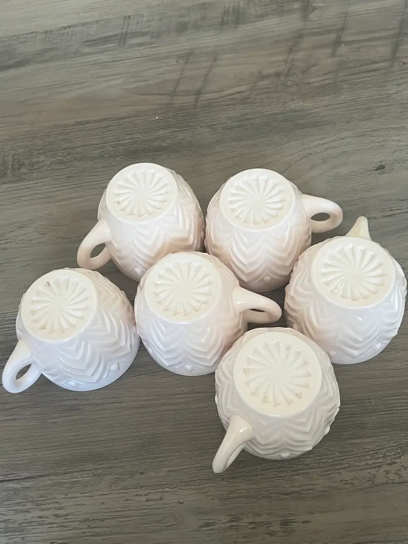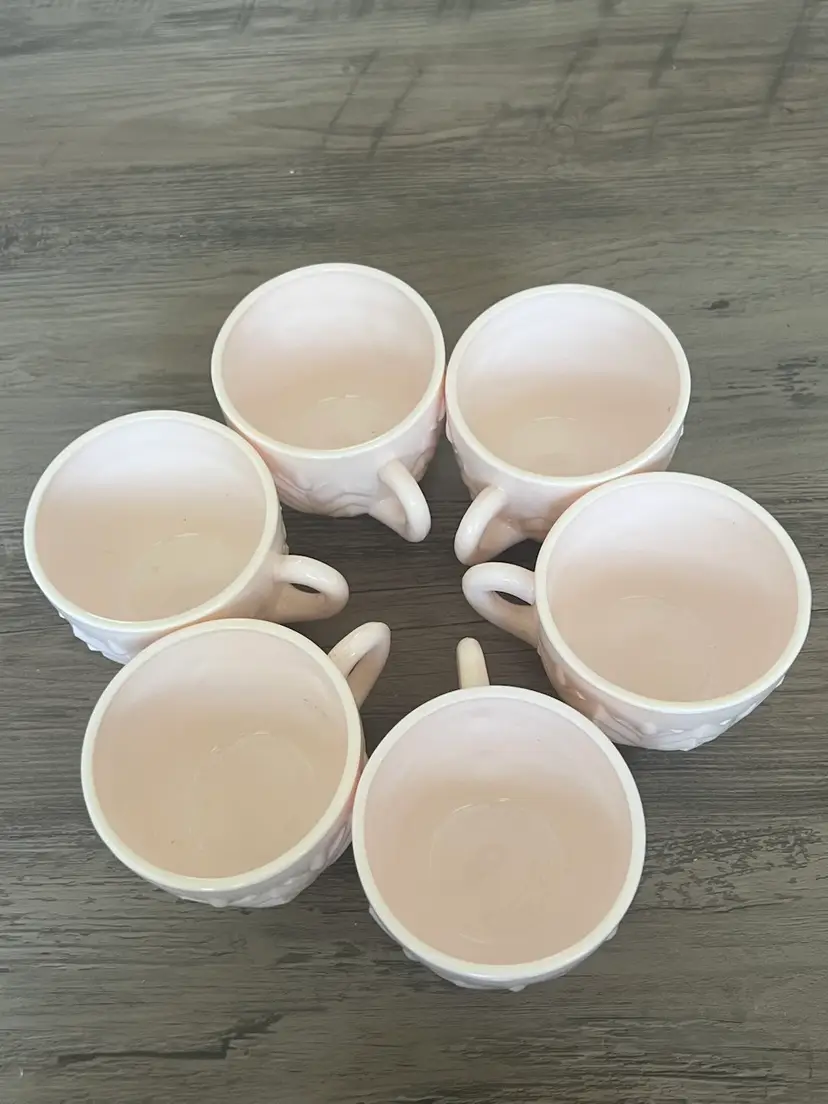 6 Vintage Jeanette Shell Feathers Pink Milk Glass Punch Cup Set Cups like new