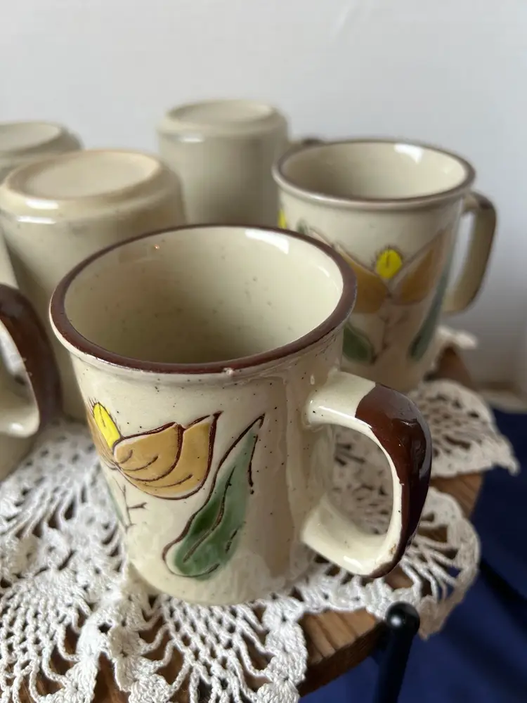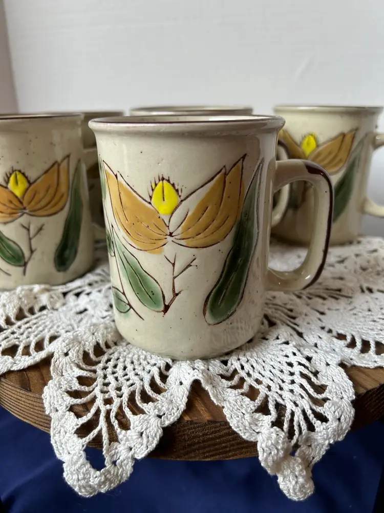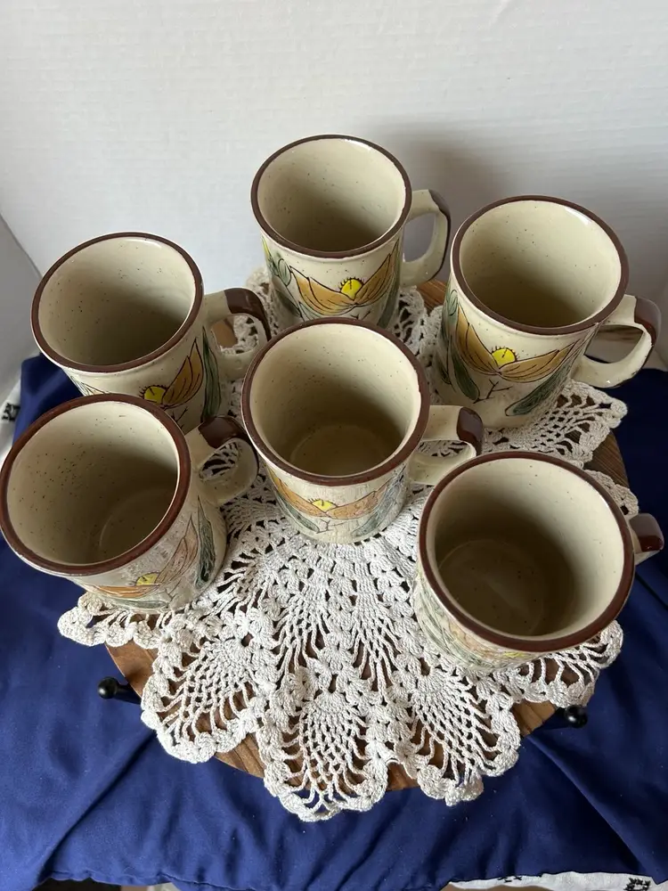 All in perfect unused condition. Last photo just shows a glaze skip and not a chip. Measure 4”tall by 3” in diameter.