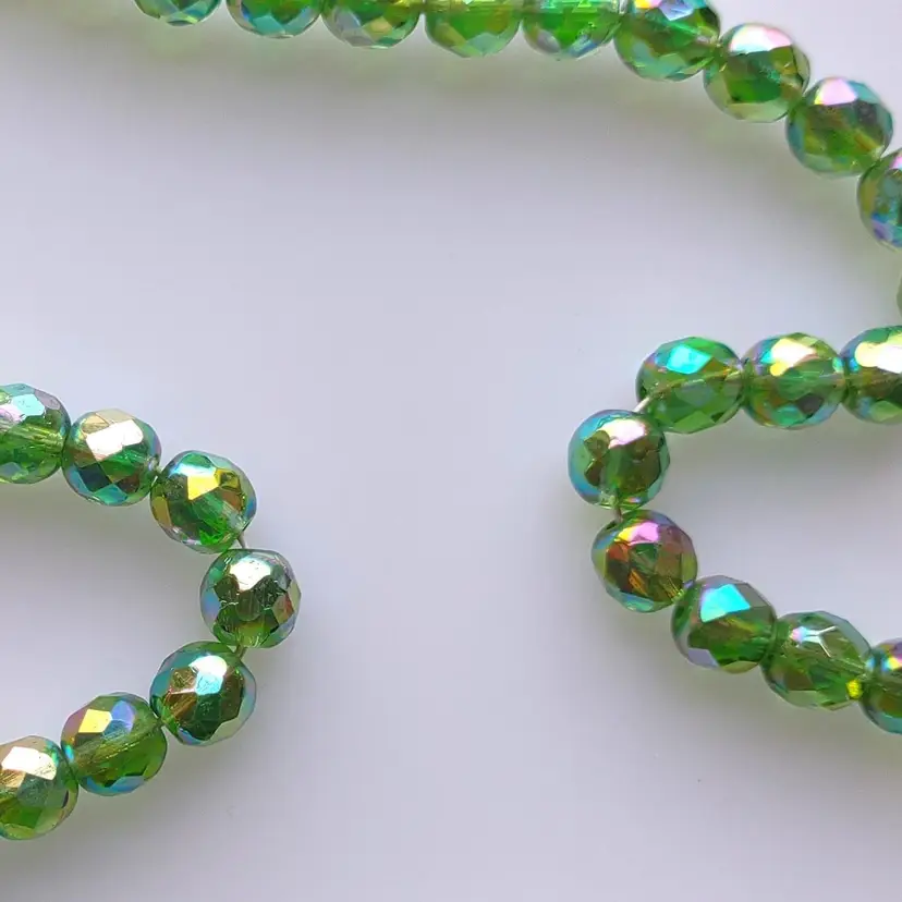 Enhance your jewelry or craft collection with these beautiful 60 vintage green glass beads made in West Germany. The beads are 8mm in size and have a smooth coating finish that gives them a unique and elegant look. These aurora borealis style beads are perfect for adding a vintage touch to your jewelry pieces or craft projects. Made of high-quality glass material, these beads come in an irregular shape and have an unknown hole size. The ethnic & regional style of these beads is unknown, but they have a beautiful green color that complements their vintage theme. These 60 vintage glass beads are new old stock (NOS) and are perfect for anyone looking to add a touch of vintage to their jewelry or craft projects.
