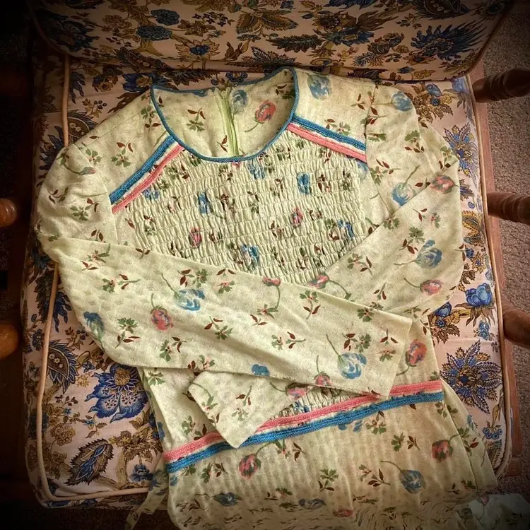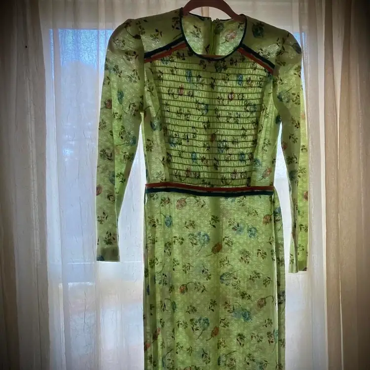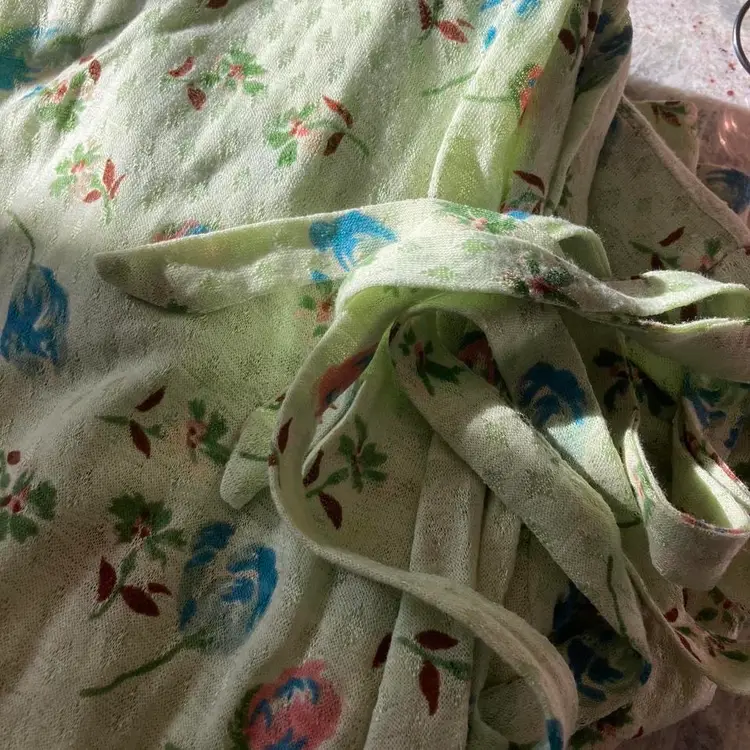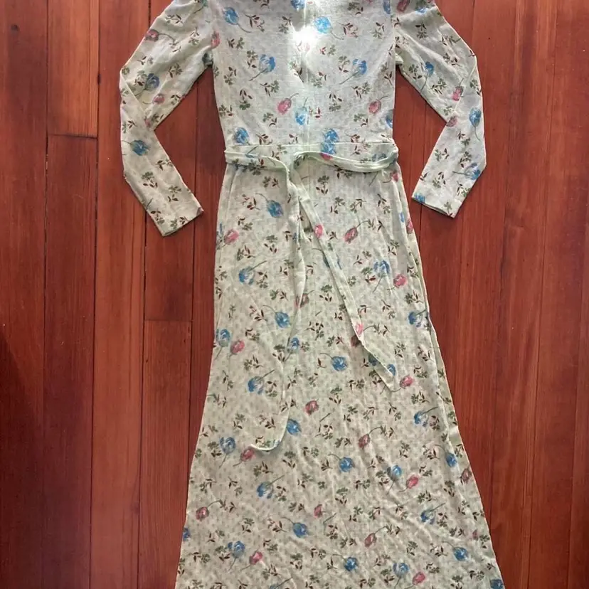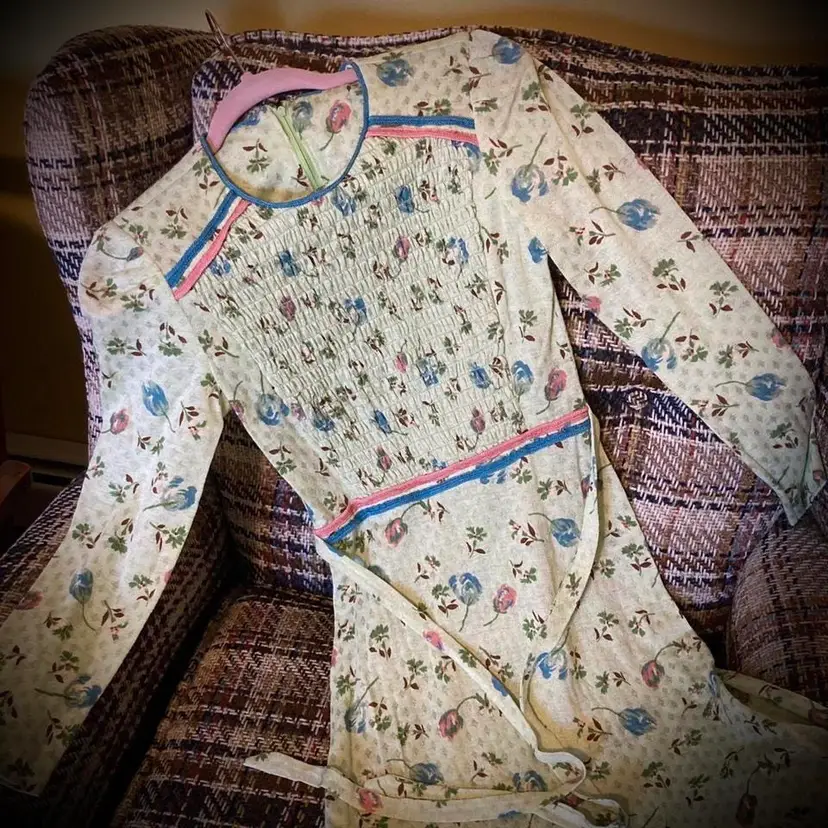 1960s house dress No brand tag on this one. I believe it's 50s/60s. I got it from a wonderful older woman named Dot. Tag reads lot size 13 Bust 15" Sleeve 15" Waist 12.5" Hem 30" Length 27" Good condition, but has 1.5" split seam under left arm pit Much more green colored in person, shown in a few photos #50s #housewife #prairie #cottagecore #tradwife