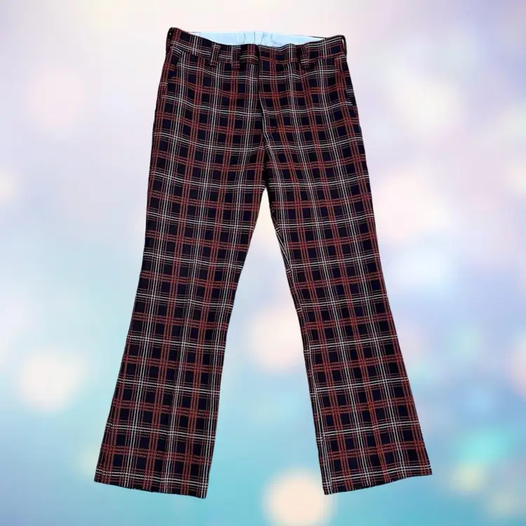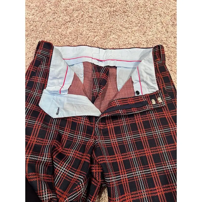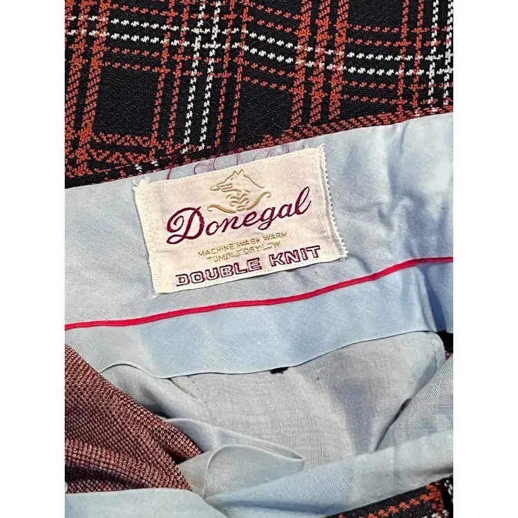 Vintage men’s Donegal double knit plaid pants navy and orange