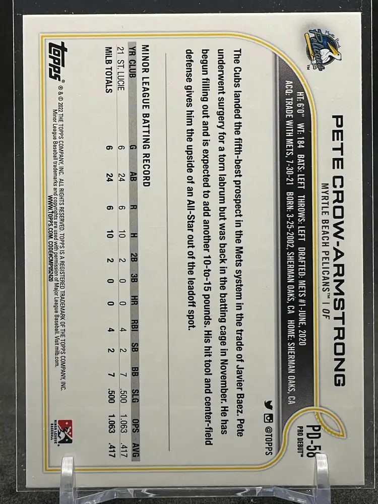 #66 - Pete Crow-Armstrong 2022 Topps Pro Debut
