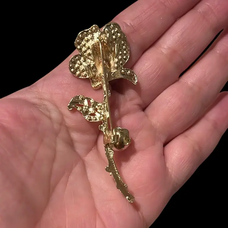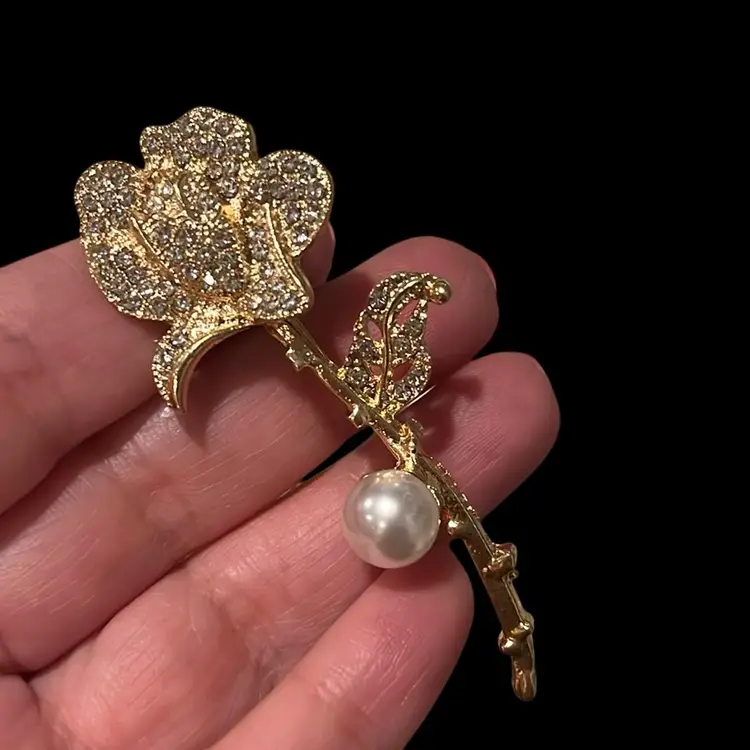 38. Faux, Pearl And Rhinestone On Gold To Brooch