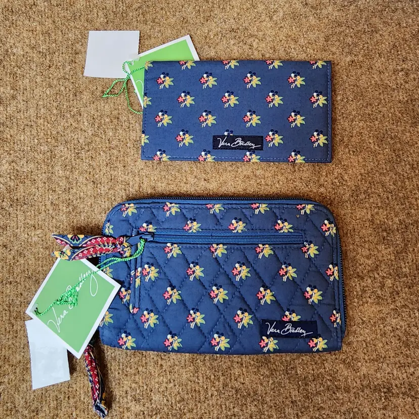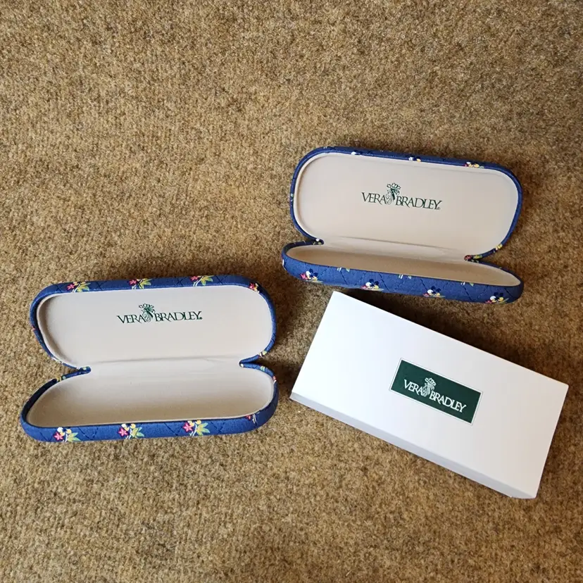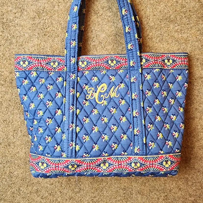 6Pc Vera Bradley Emily Floral Blue Tote Checkbook Glasses Case Wallet Makeup Bag DMC Embroidered Monogram (Q008) CONDITION: Everything is New with Tag except one glasses case. It is New without Tag SIZE: Medium COLOR: Blue STYLE: Tote CLOSURE: Hook & Toggle WIDTH: 13” HEIGHT: 10” DEPTH: 4.5” DROP: 7” EXTRAS: 2 hard glasses cases, 1 makeup bag, 1 checkbook, and 1 Zip Wallet The measurements listed are the only measurements that will be taken.