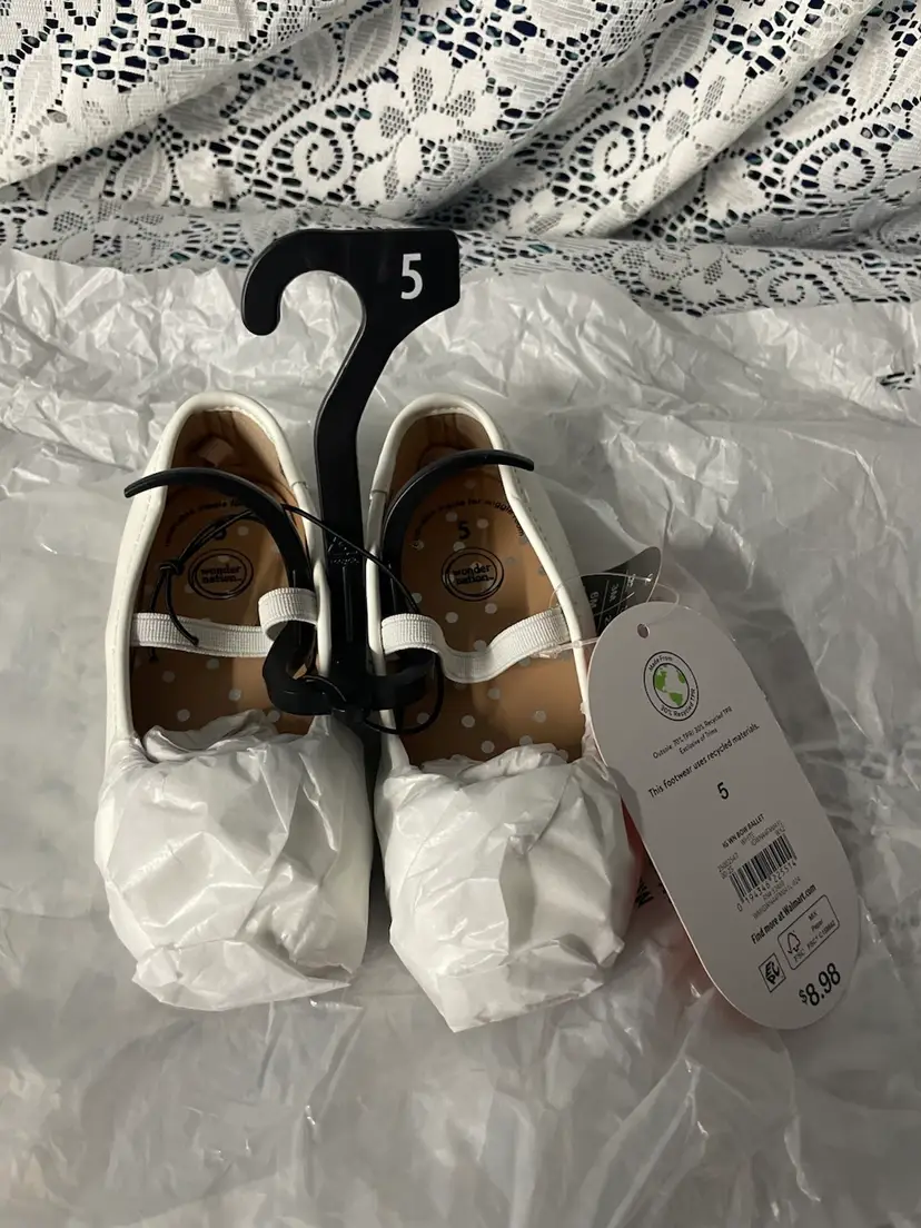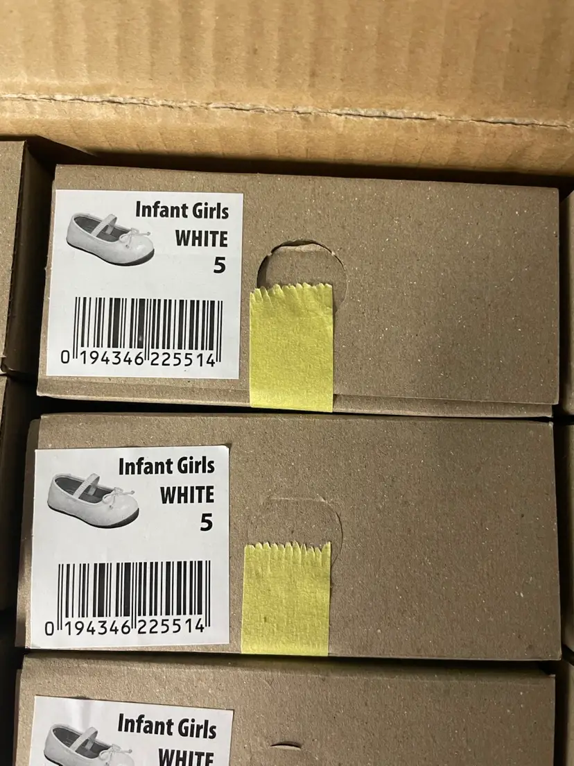 Cute little infant shoes in white that showcase a small bow on the front. Each pair individually boxed and comes 6 pairs to a case. Brand new with tags and size 5 infant.