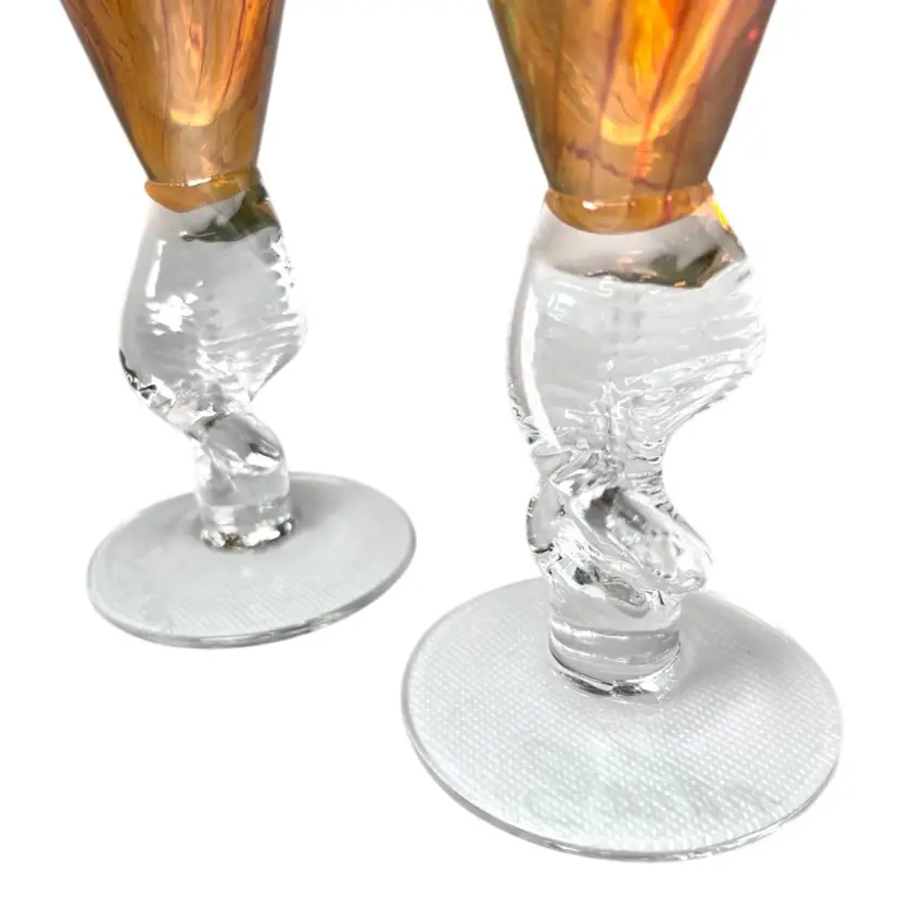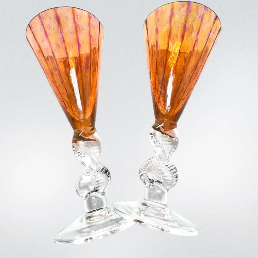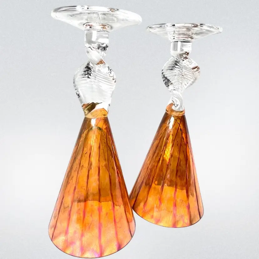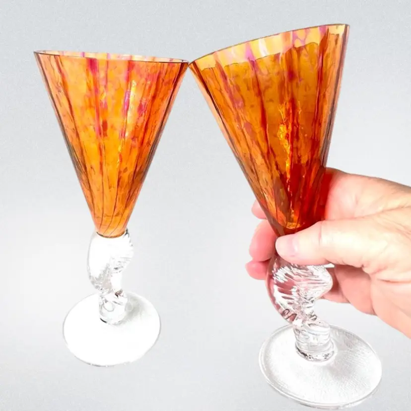 Handblown Orange 🧡& Purple 💜 Swirl Wine Glasses.