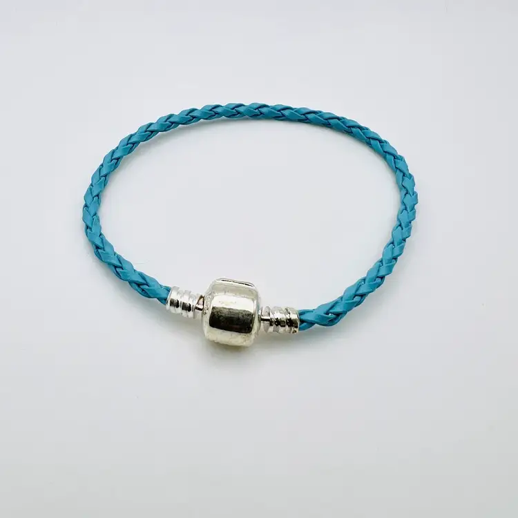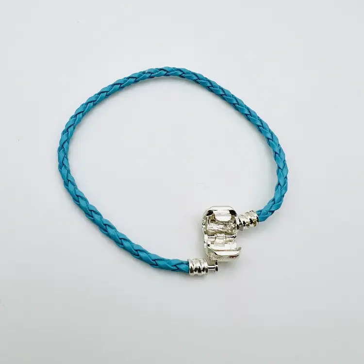 đź’Ž7 Inch PU Braided Leather Blue European Charm Bracelet with Barrel Clasp