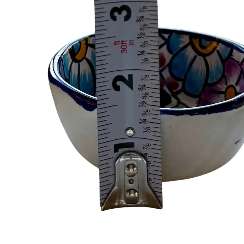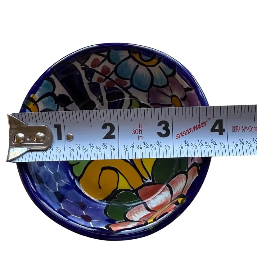 Measurements: Small bowl- 3-3/4” W x 1-1/2” H Individual dishes, widest part- 5” W x 1-5/8” H Large bowl- 12” W x 1-3/4” H