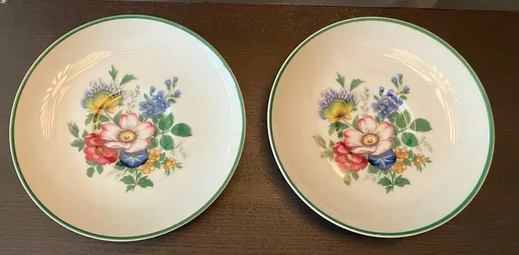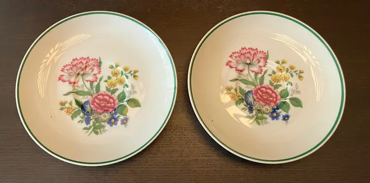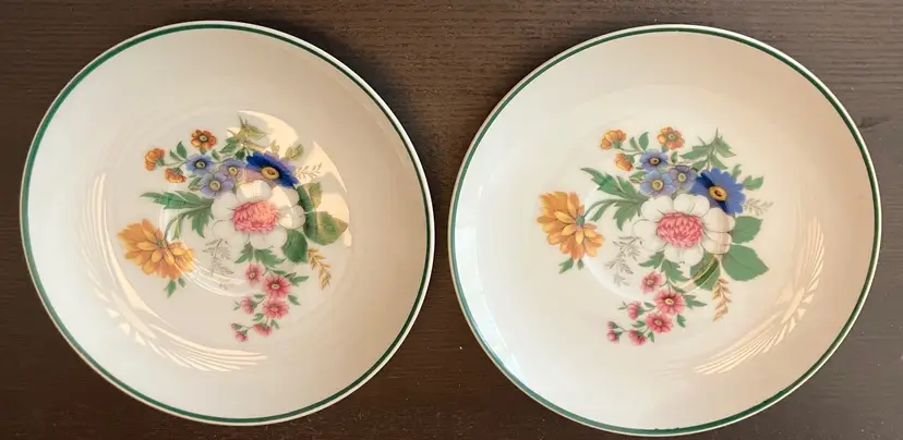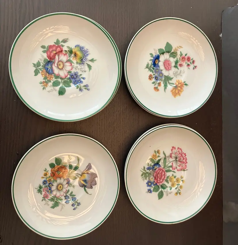 7 saucers. 2 of each of 3 patterns and 1 of the last pattern. See the pictures. No chips or cracks. Each measures approximately 6" wide. Weighs 3 lbs. total. Made in Japan