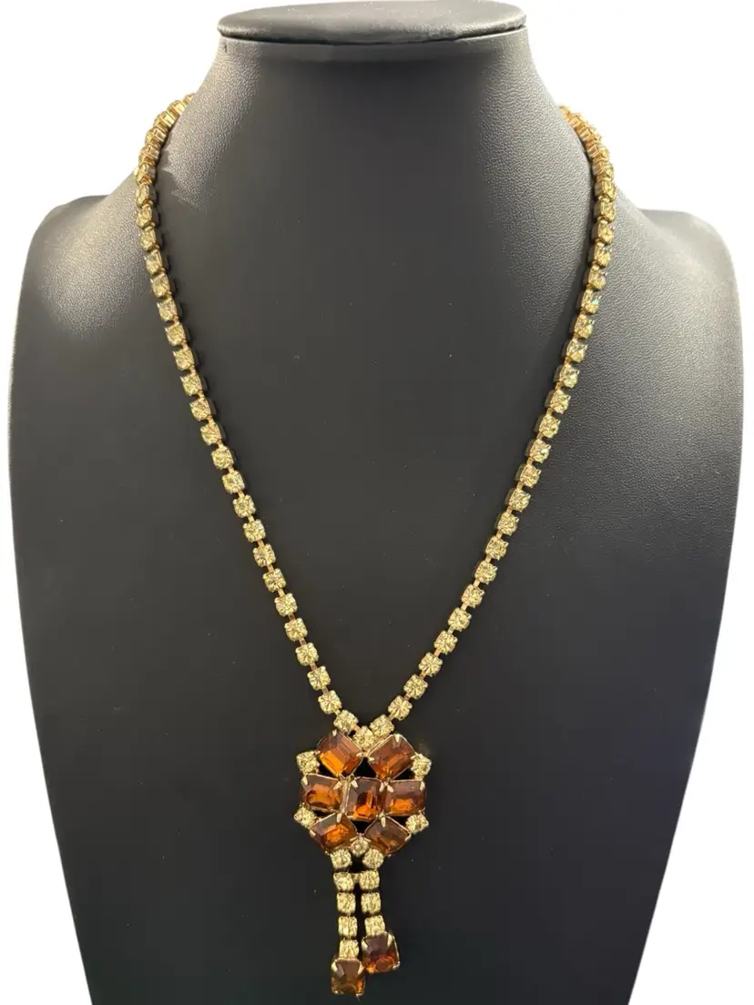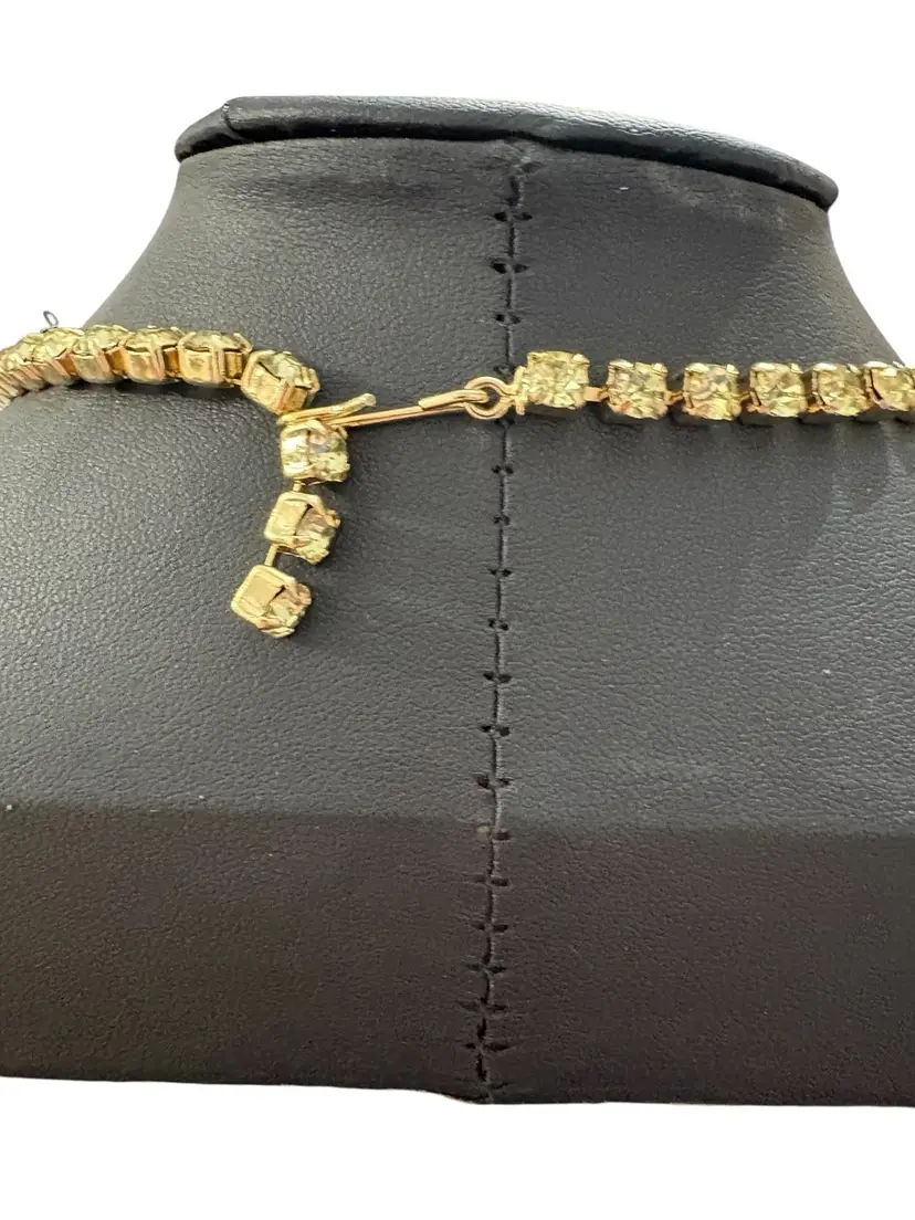24 inches in length, with shepherds hook clasp, no missing rhinestones