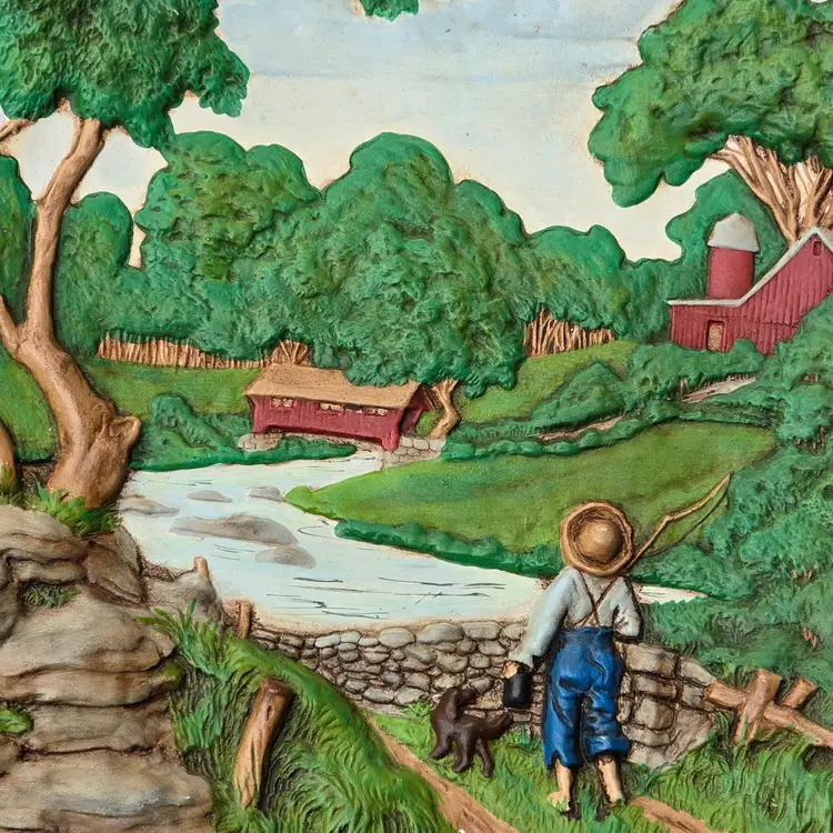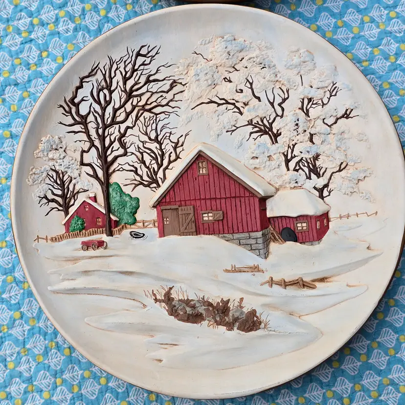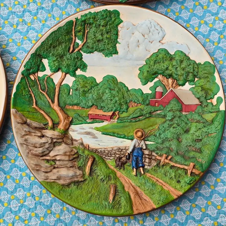 70s Byron Molds Ceramic Country Farm House Scene Barn Hanging Wall Plates Decor