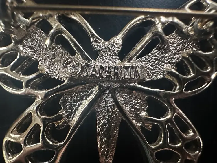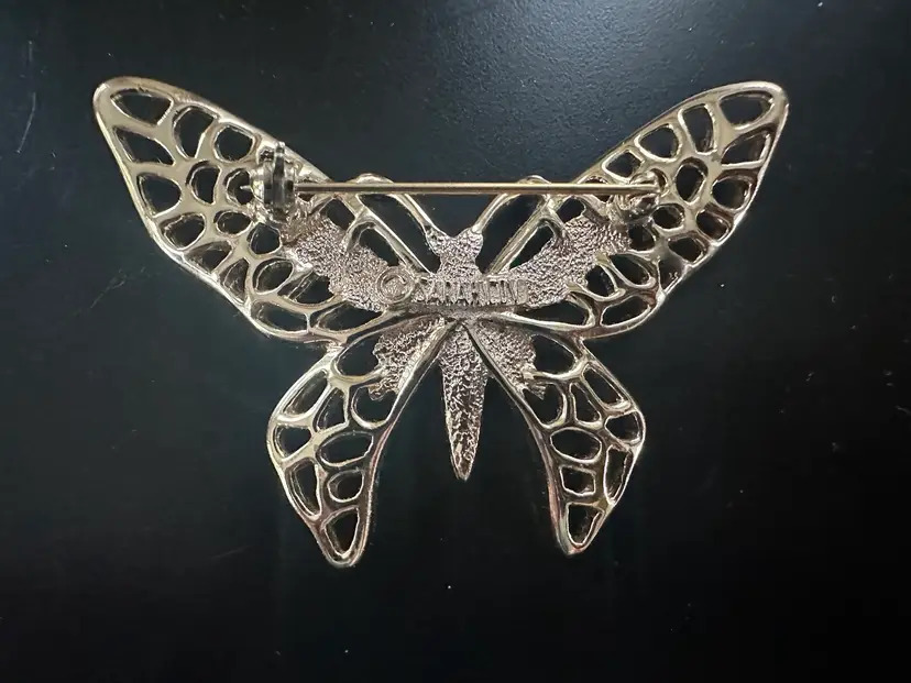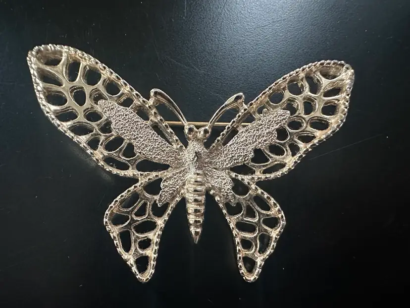 Gold town textured butterfly pin. It measures roughly 2 inches in width.