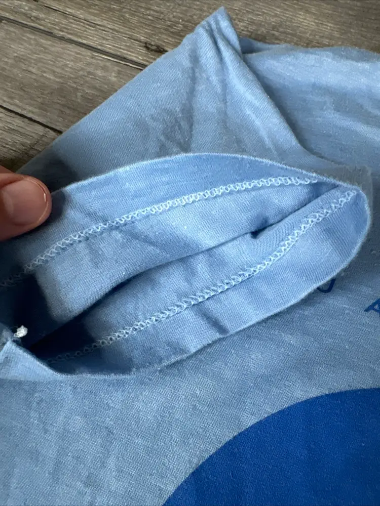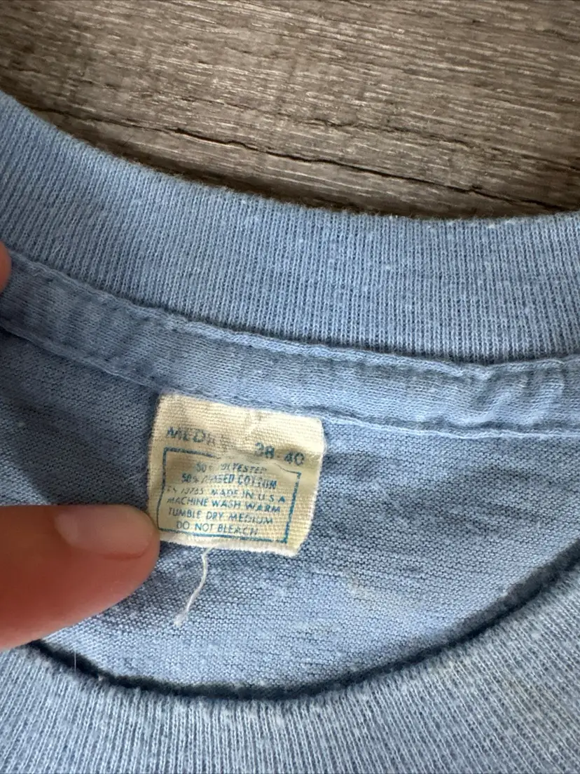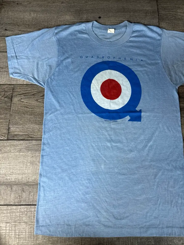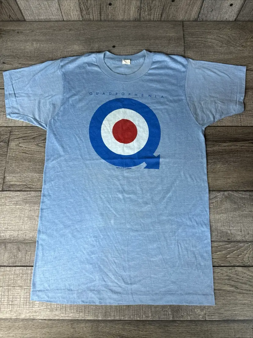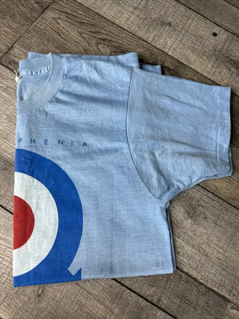 This vintage 70's "THE WHO" Quadrophenia Blue T-Shirt is a rare find for any fan of the band. The shirt features a bold design that captures the essence of the band's unique style. Rock on!! -What you see is what you receive, please see photos. -Item is sold as is. -Some light discoloration- see pictures! -Pit to pit 16 1/2” -From top to bottom 27” -Free shipping.