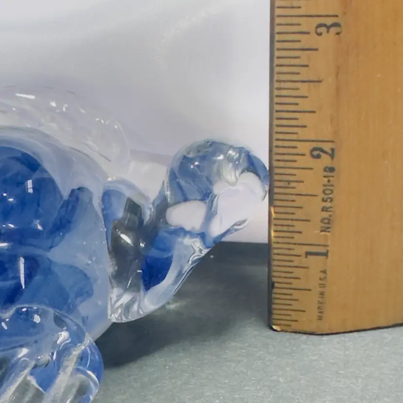 no chips or cracks, 5x4x2, 14oz, has UV glow in the blue part