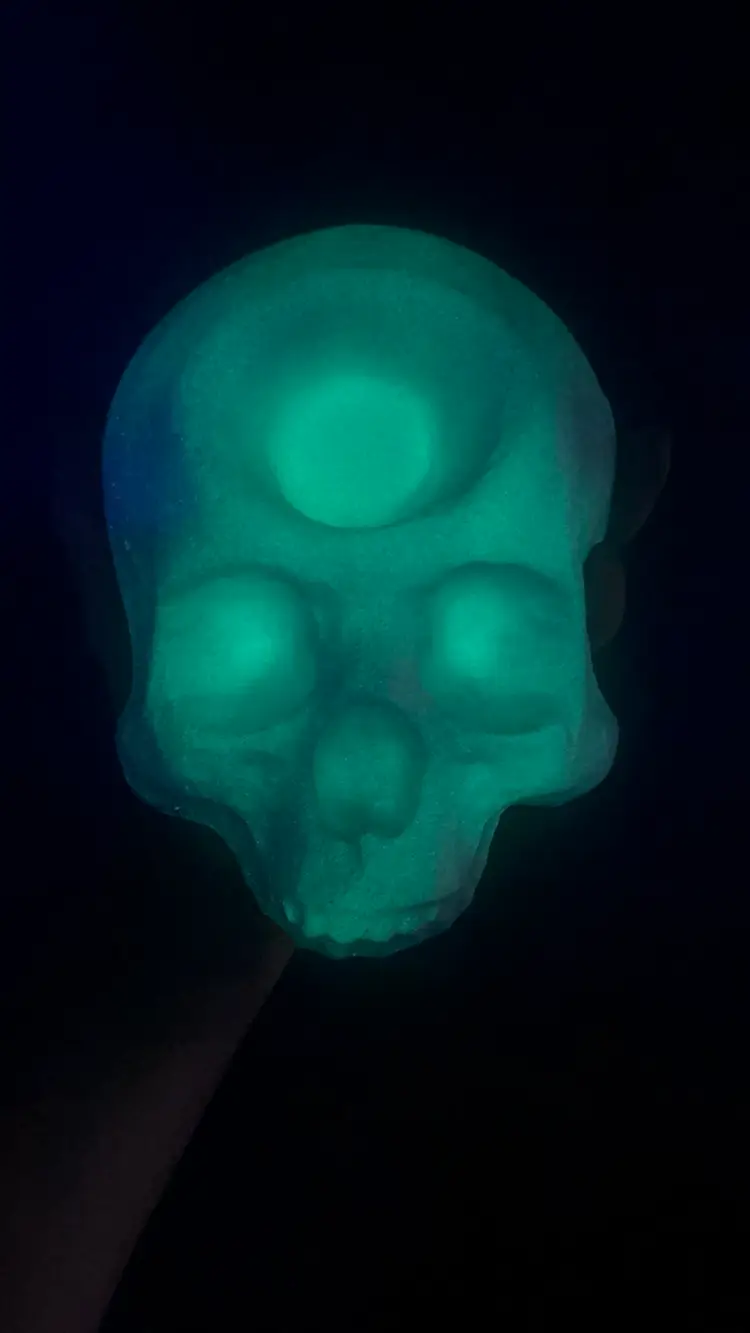 Hand poured concrete skill, tea, light or air plant holder. Glows in dark.