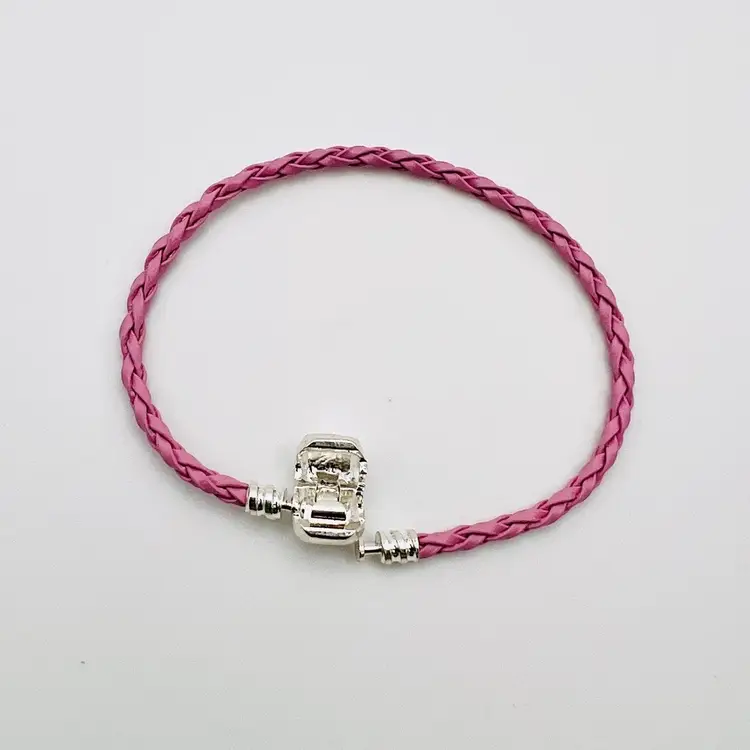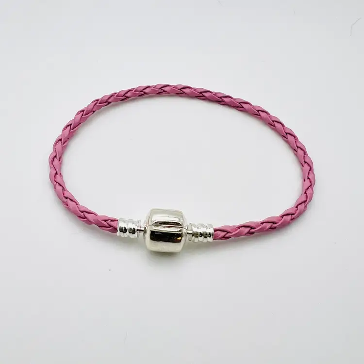 đź’Ž7.5 Inch PU Braided Leather Pink European Charm Bracelet with Barrel Clasp