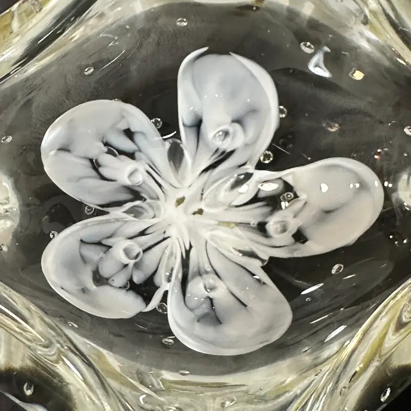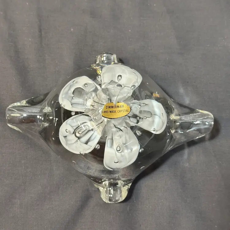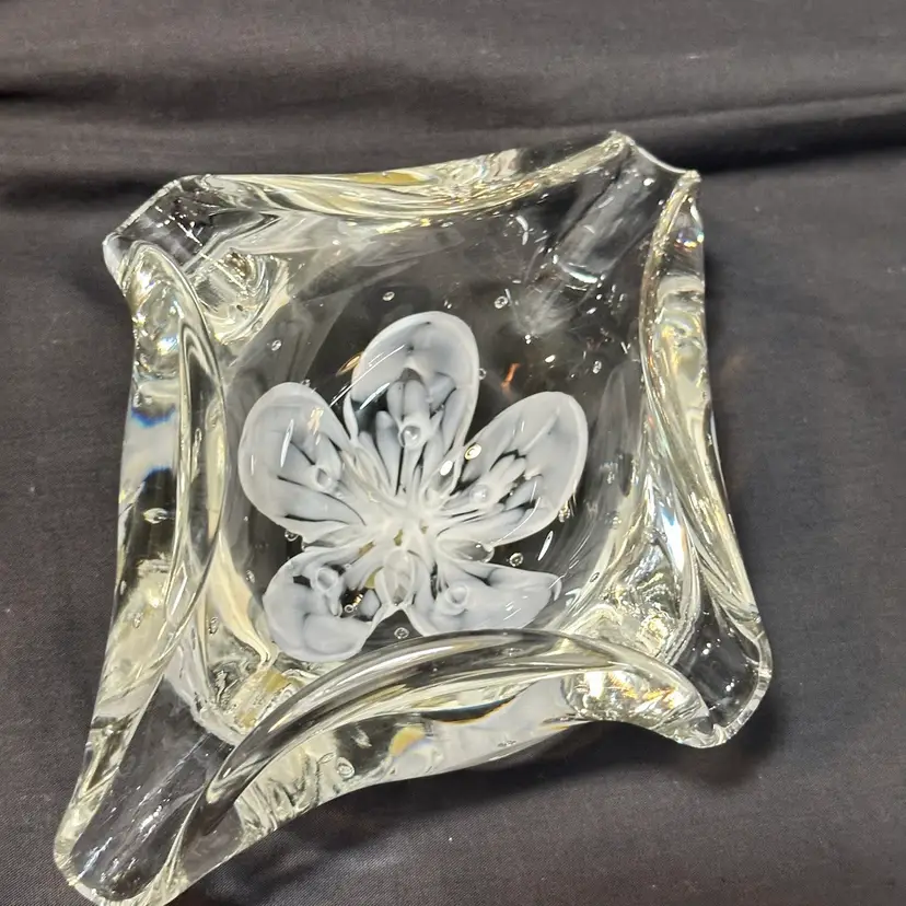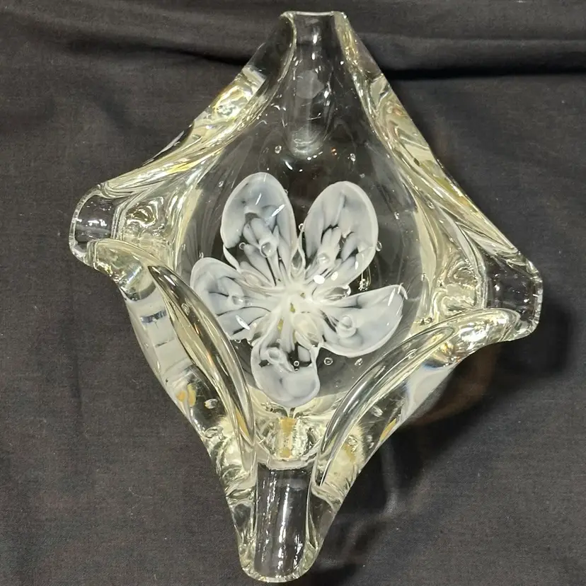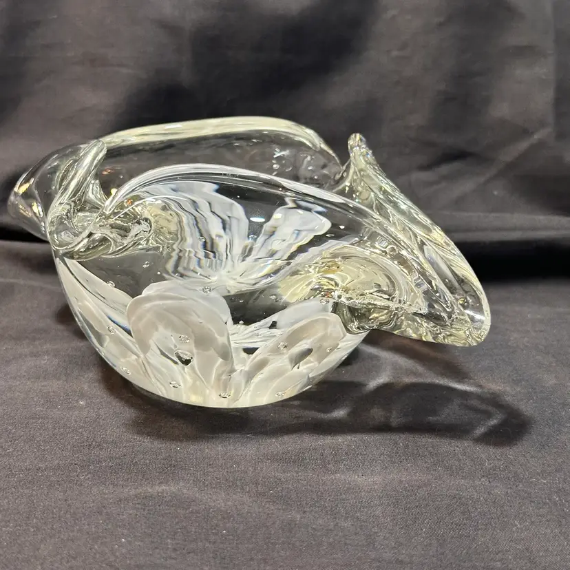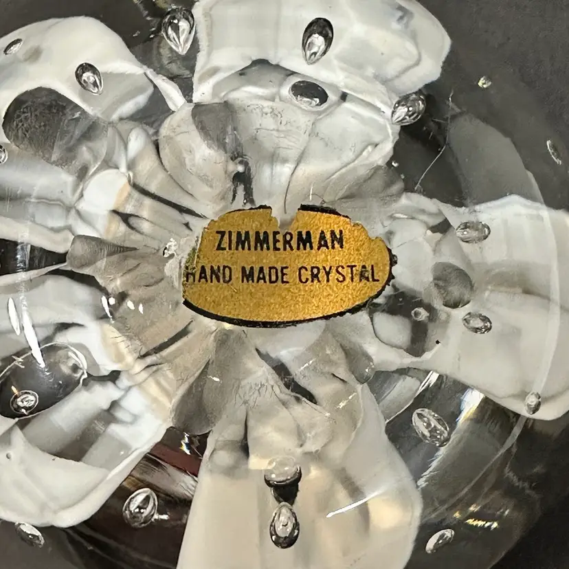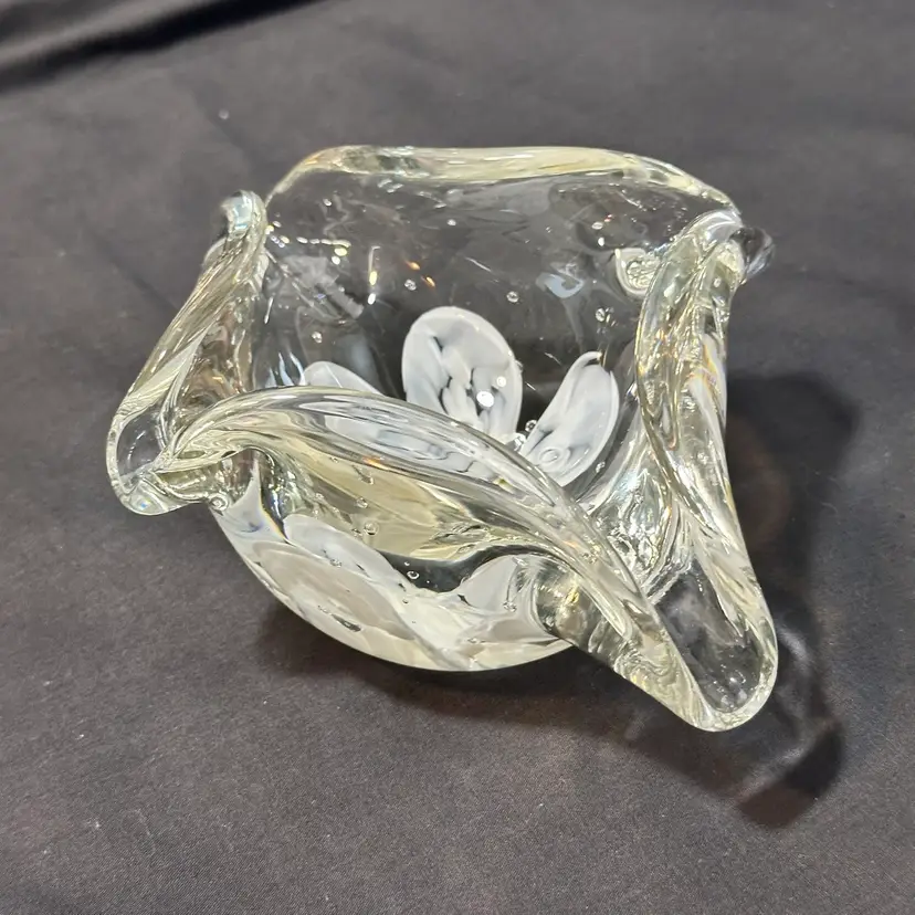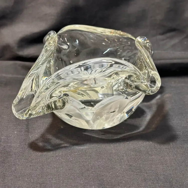 Vintage white flour Zimmerman art glass bowl or ice tray handmade crystal control bubbles four lines no chips or cracks