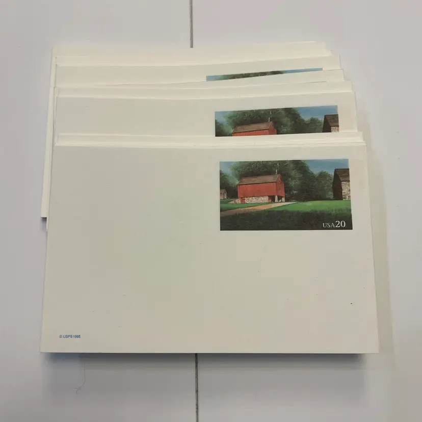 These have never been used. All you have to do is add the postage difference between 1995 and now. Measures 3 1/2 inches by 5 1/2 inches. If the actual postage ends up being less than what you paid, you will be refunded for anything over one dollar.