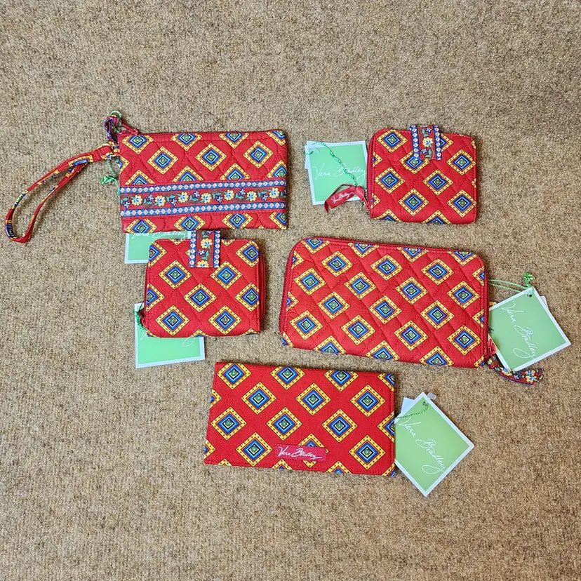 6Pc Vera Bradley Villa Red Tote Wallet Wristlet Checkbook Quilted Handbag Purse (Q010) CONDITION: New with Tag SIZE: Medium COLOR: Red STYLE: Tote CLOSURE: Hook & Button WIDTH: 12” HEIGHT: 12” DEPTH: 4.5” DROP: 13” EXTRAS: 1 zip wallet, 1 wristlet, 1 checkbook, 1 coin purse, 2 mini zip wallets The measurements listed are the only measurements that will be taken.