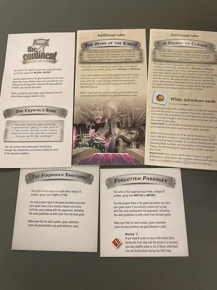 Base game with expansions - The Crystal Song The Veins of the Earth A Prison of Clouds The Forbidden Sactuary Forgotten Passages