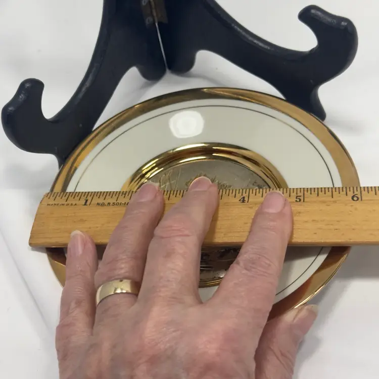 6", 6oz, no issues with plate it may have some marks scratches due to age or use