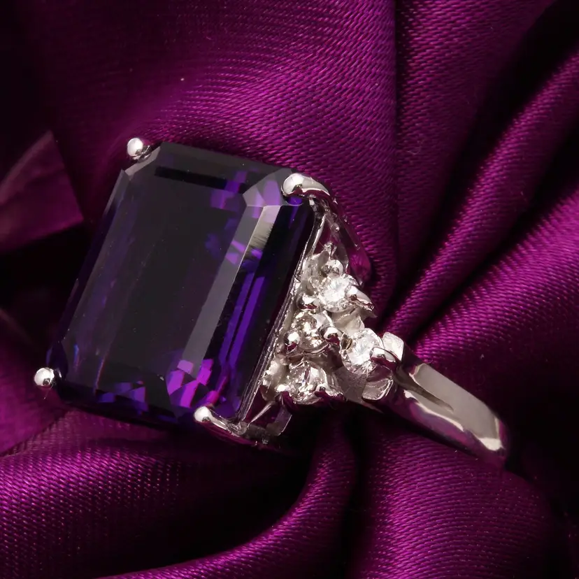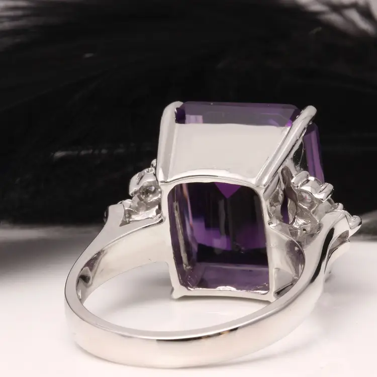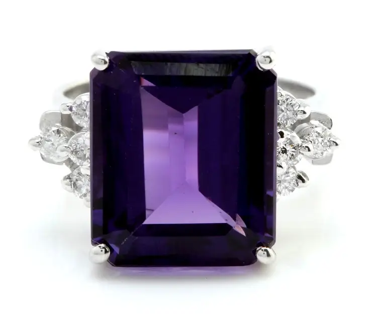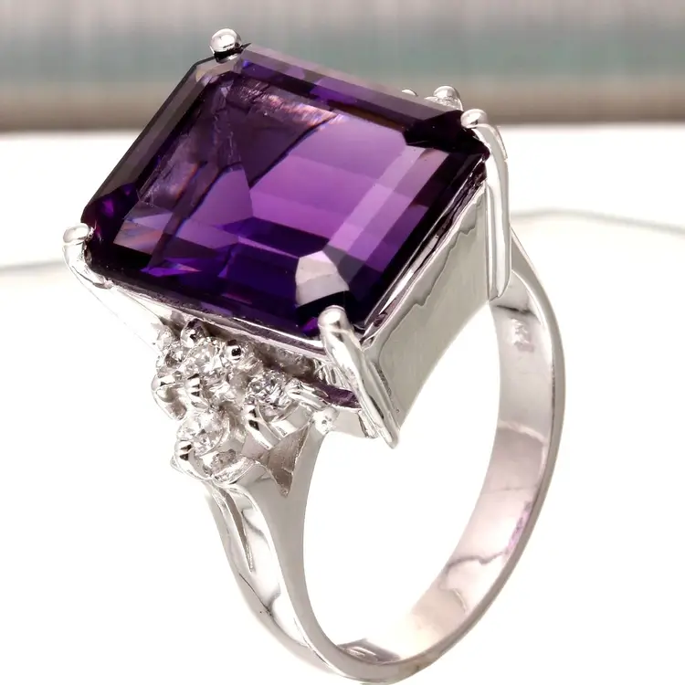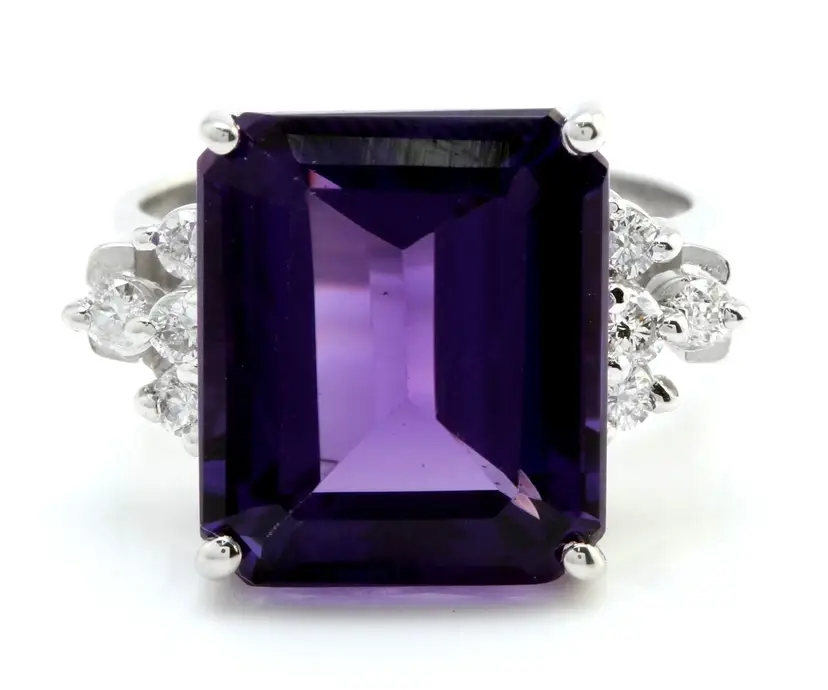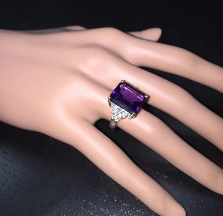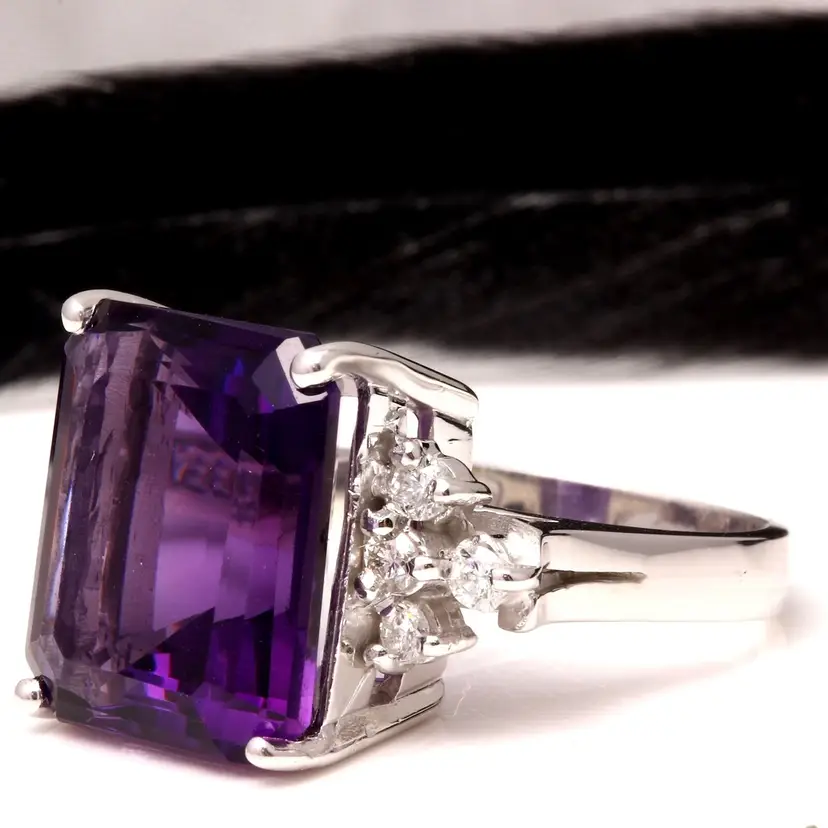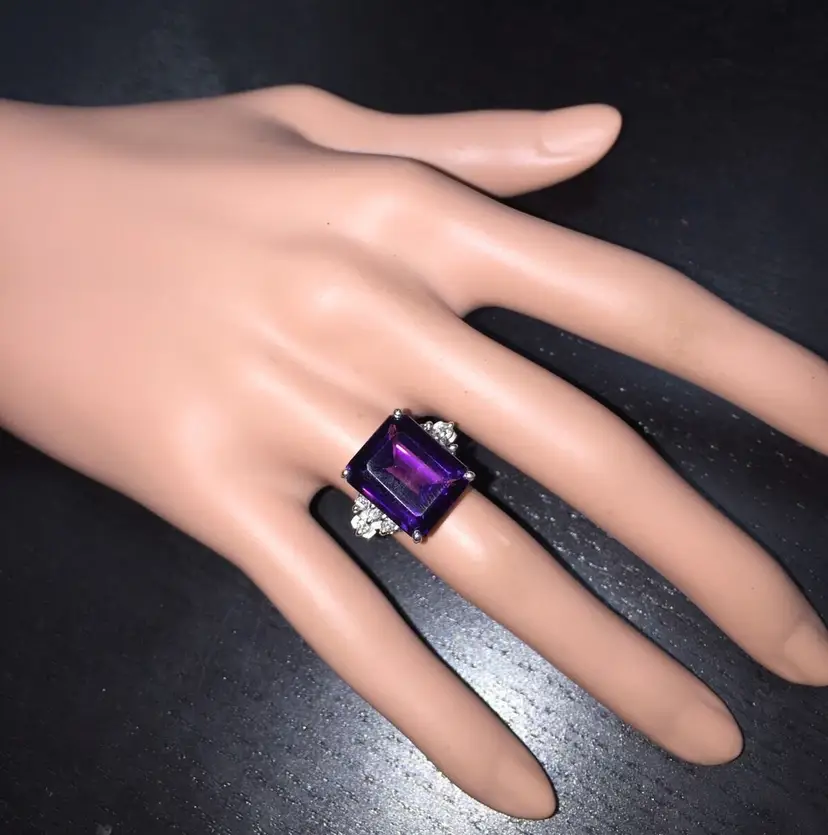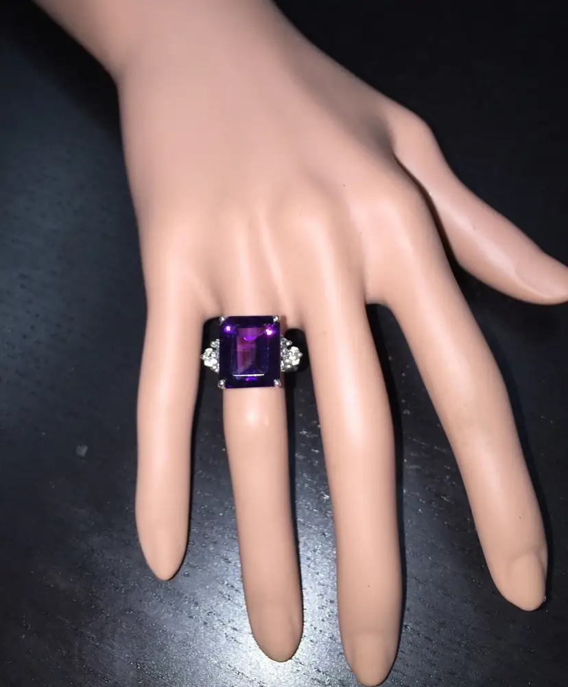 Metal: White Gold Metal Purity: 14k solid gold Sizable: Yes Main Stone: Amethyst Main Stone Color: Violet Total Carat Weight (TCW): 8.35 Main Stone Shape: Emerald Ring Size: 7.5 Main Stone Creation: Natural Main Stone Treatment: Not Enhanced Brand: Unbranded Type: Ring