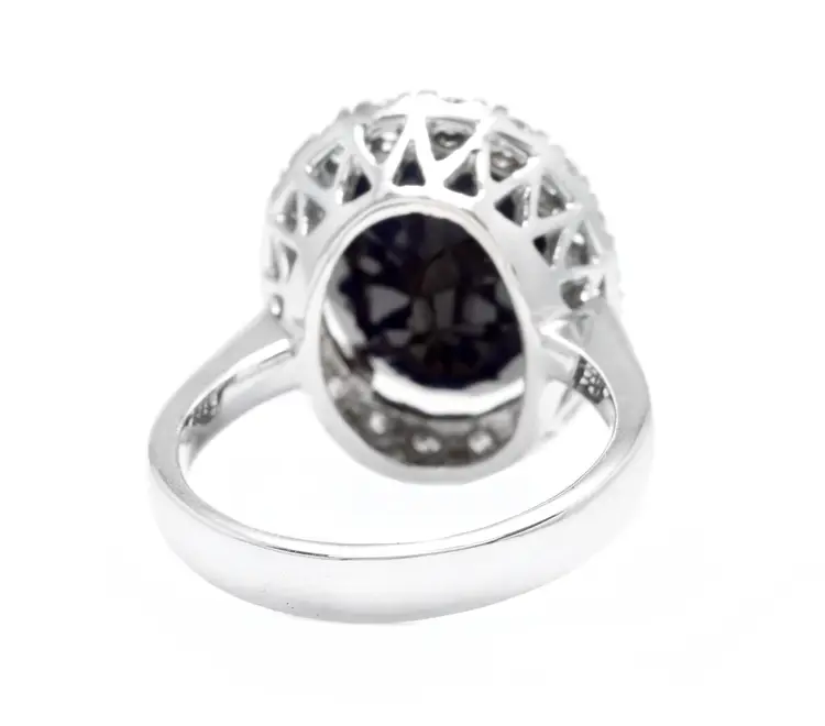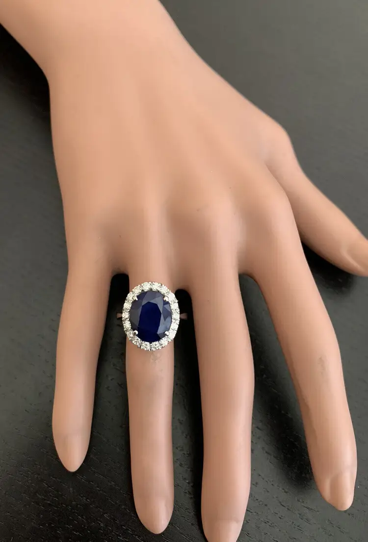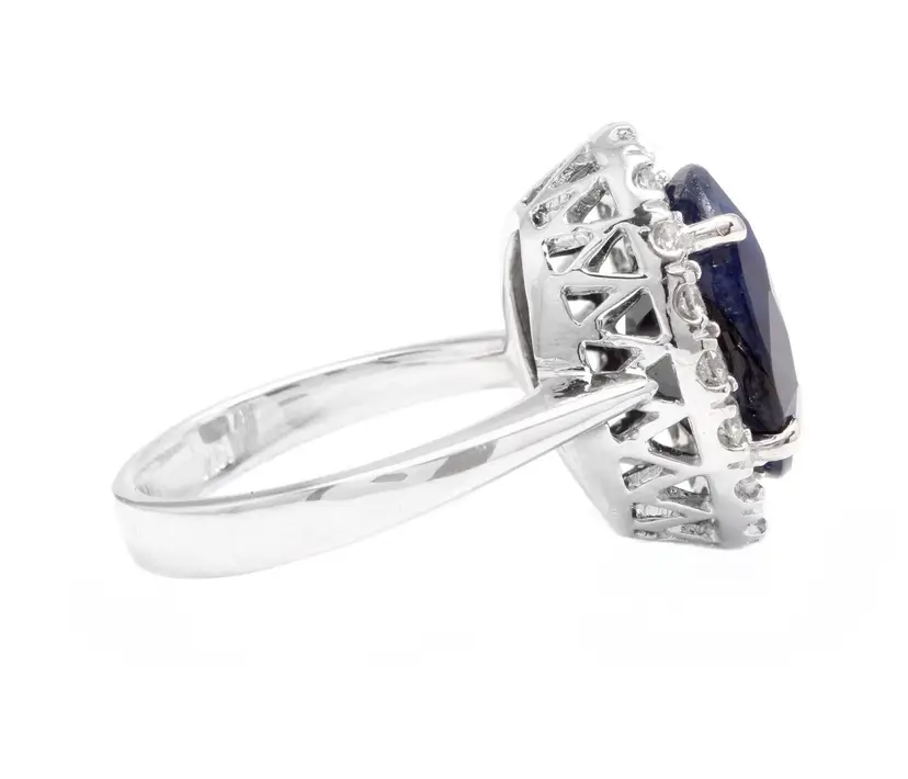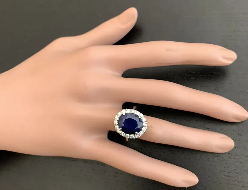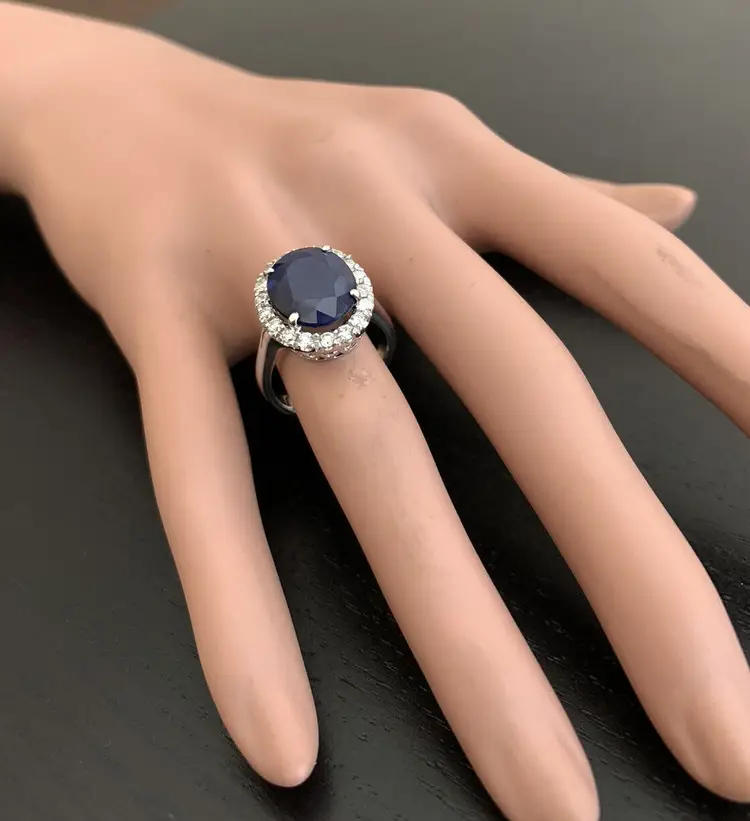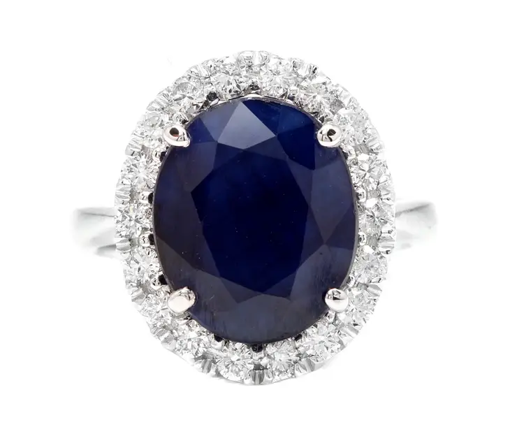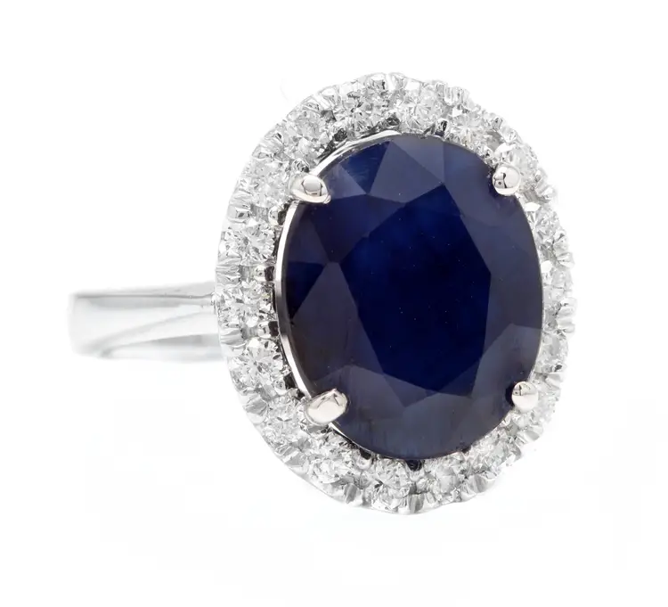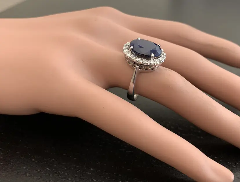 Main Stone: Sapphire Total Carat Weight (TCW): 8.80 Metal: White Gold Main Stone Treatment: Diffusion Sizable: Yes Secondary Stone: Sapphire Style: With Diamonds & Gemstones Metal Purity: 14k solid gold Main Stone Shape: Oval Ring Size: 7 Main Stone Color: Blue Main Stone Creation: Natural Brand: Unbranded Type: Ring