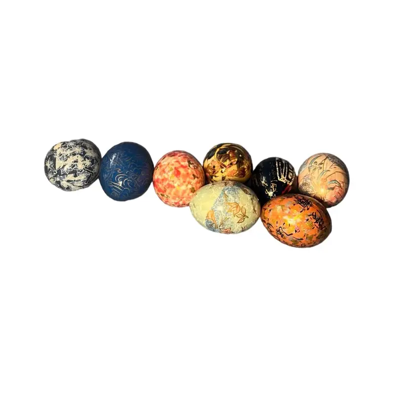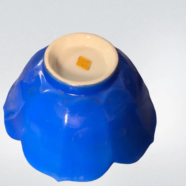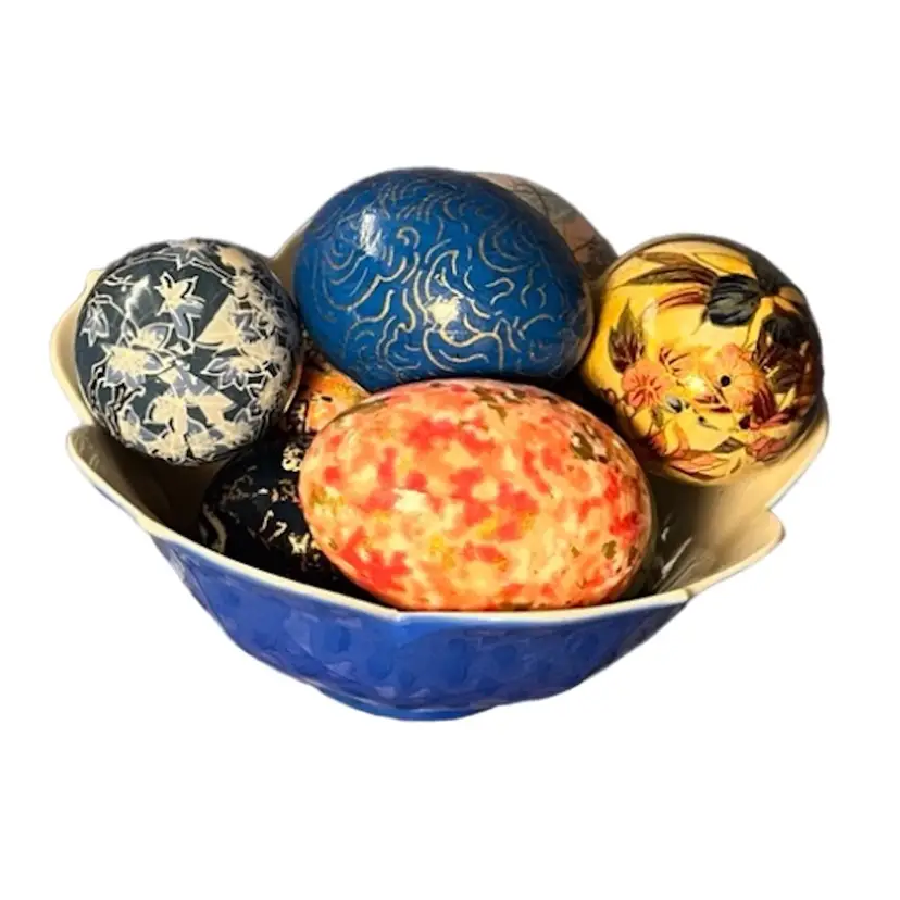 One of a kind handmade eggs with a blue tulip bowl. 4” bowl, regular large size eggs.