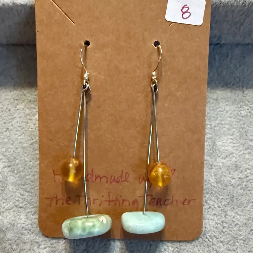 #8 Larimar & Amber Earrings .925 Hooks HANDMADE BY ME