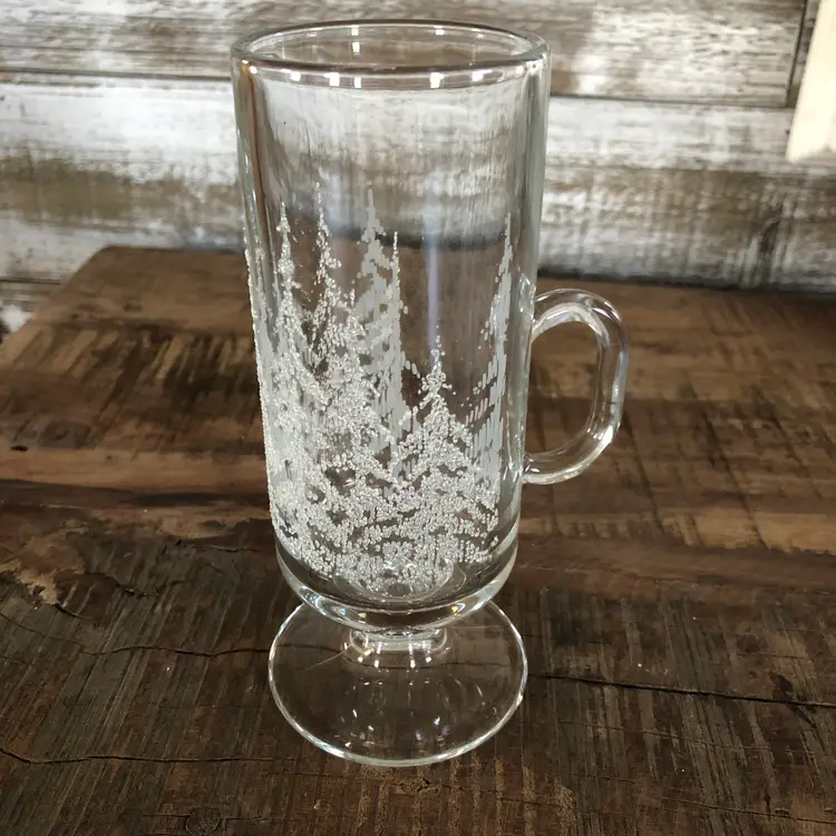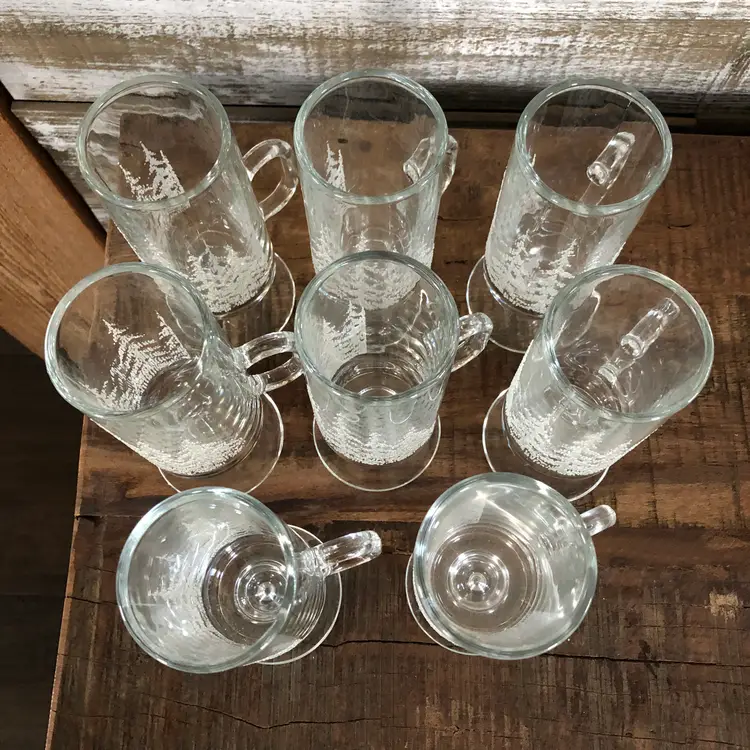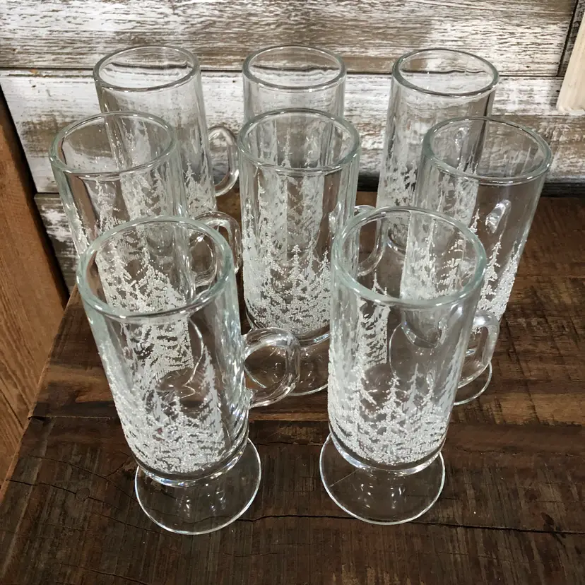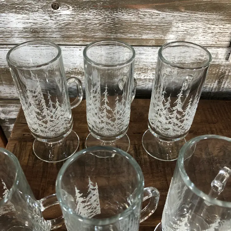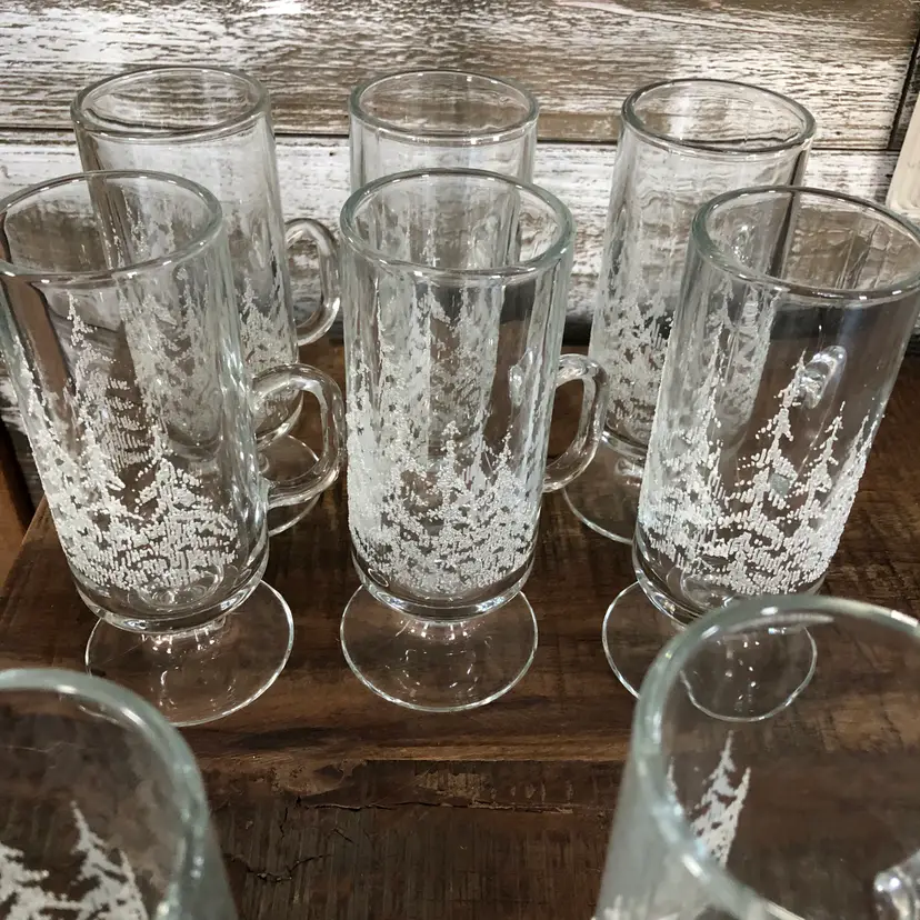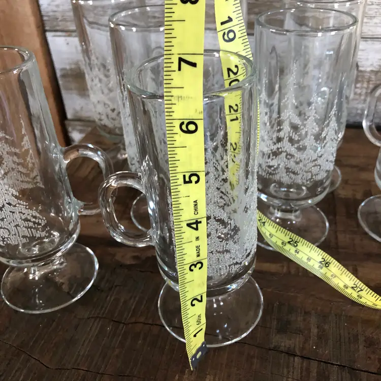 Libbey Frosty Pines Irish Coffee Mug Textured Glass Tea Cups Holiday Cocoa Set of 8 Height: 6 3/8 in Width: 2 3/8 in Blown Glass Crafted In United States Excellent used condition. No chips or cracks. Measurements in photos are as follows P2P, waist, length (Approximate) Please check measurements to avoid returns Colors and textures may vary slightly from photos. Smoke-free home Don’t hesitate to ask any questions you may have. Thank you!