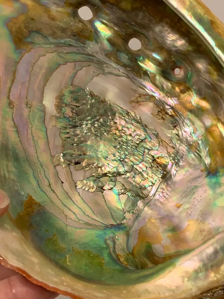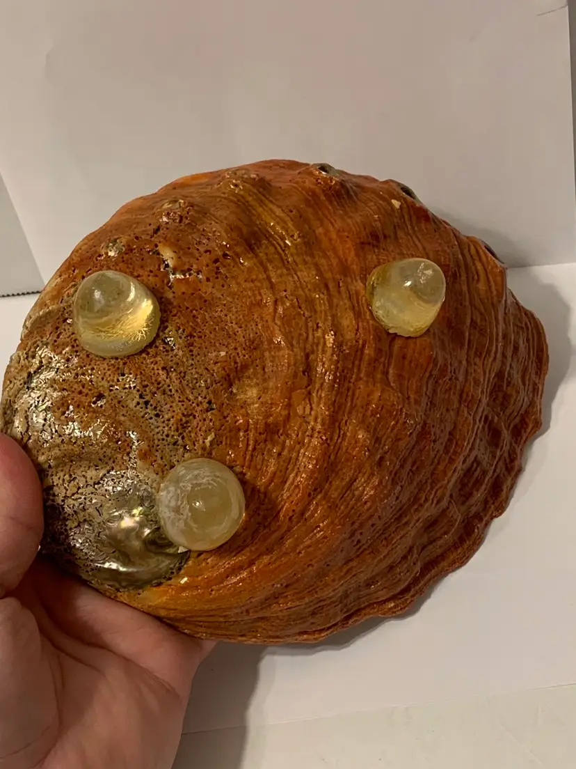 Rubber feet added to bottom. There are remnants of a lacquer coating on the inside.