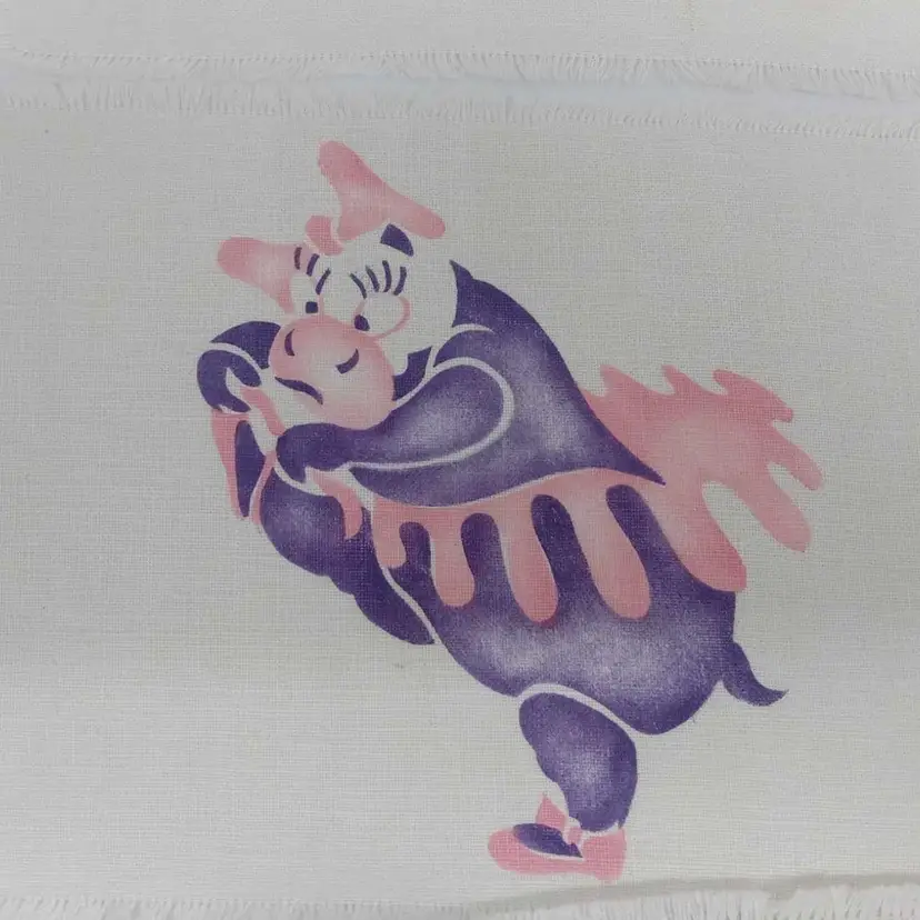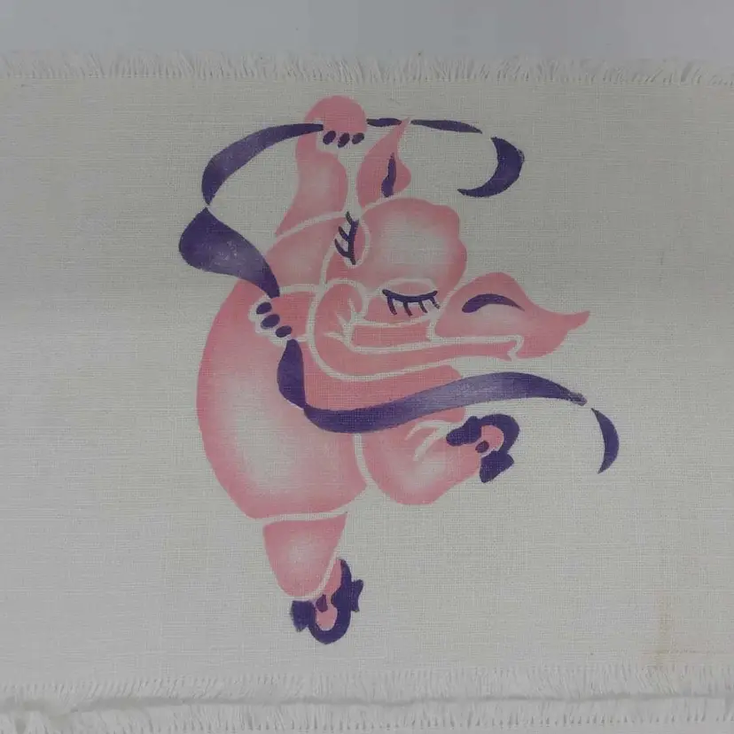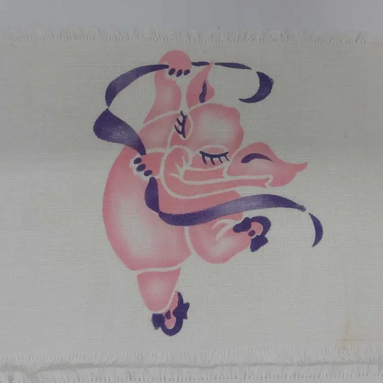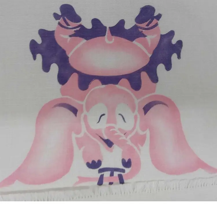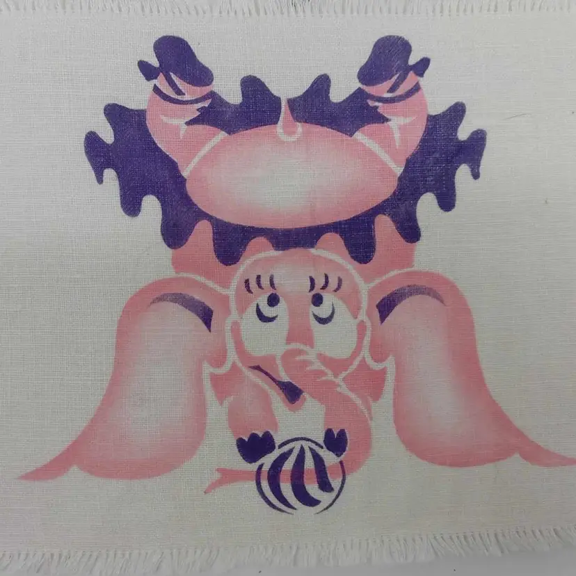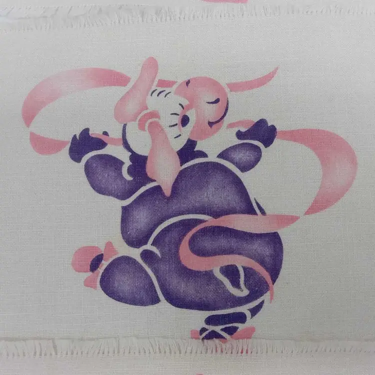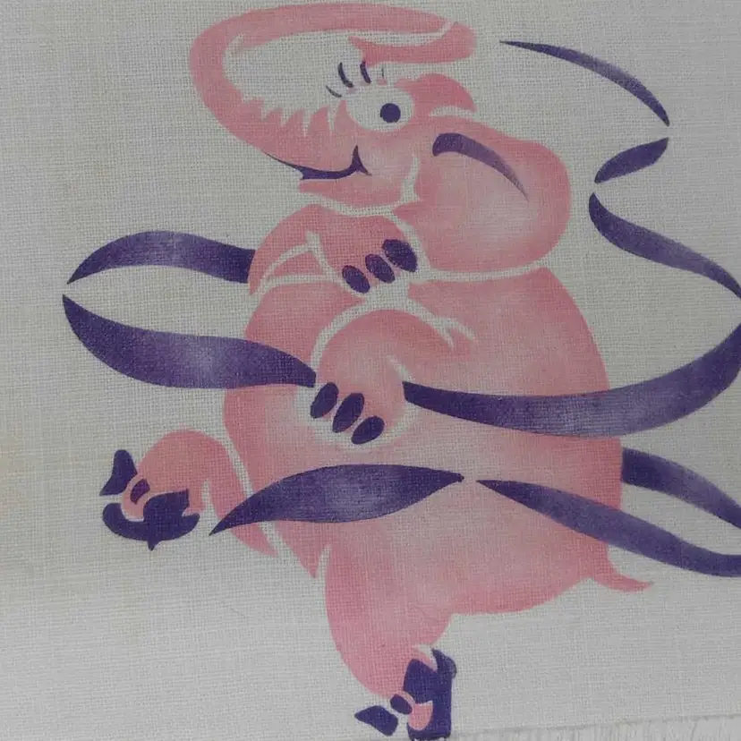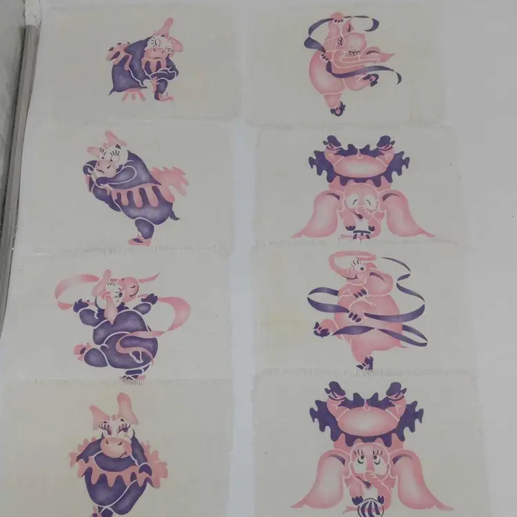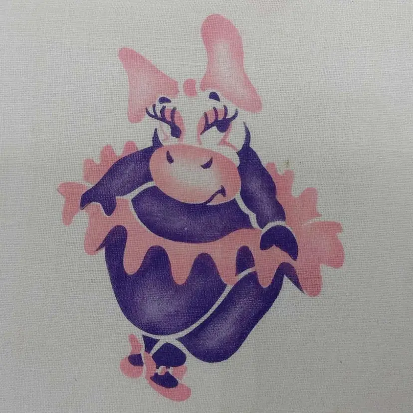 Here are some adorable quilt squares featuring pink and purple hippos and elephants. They alternate between ribbon dancing and ballet. Each piece is 8 x 5.5 inches. There are 8 individual blocks.