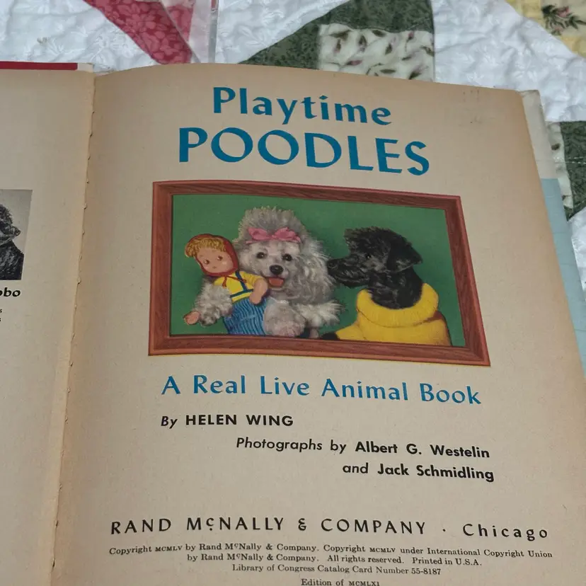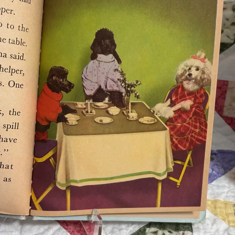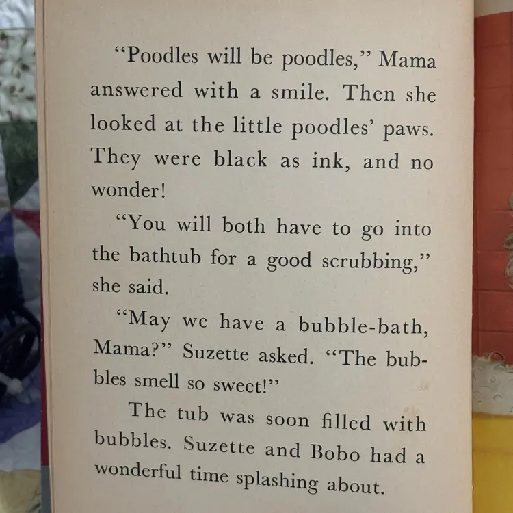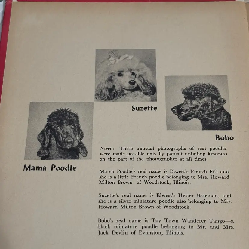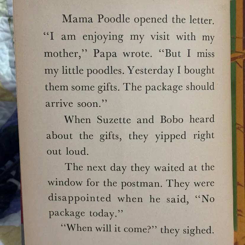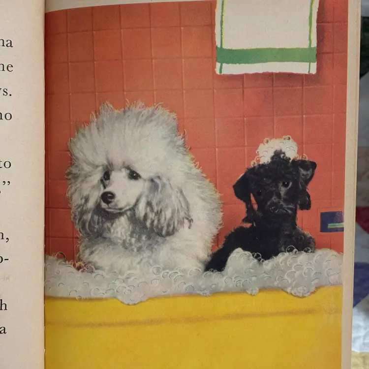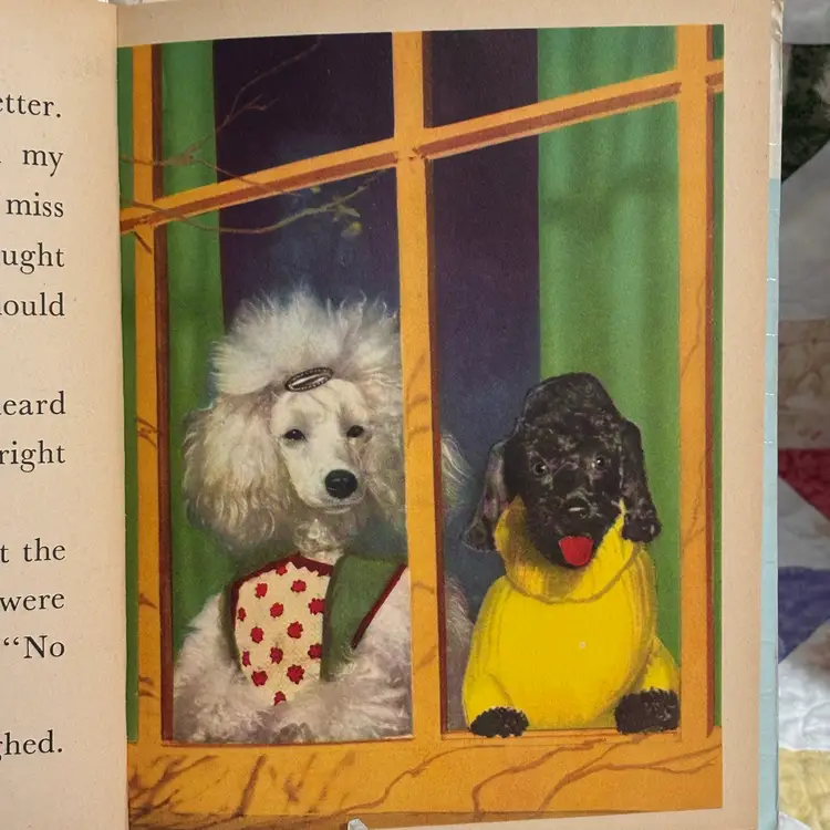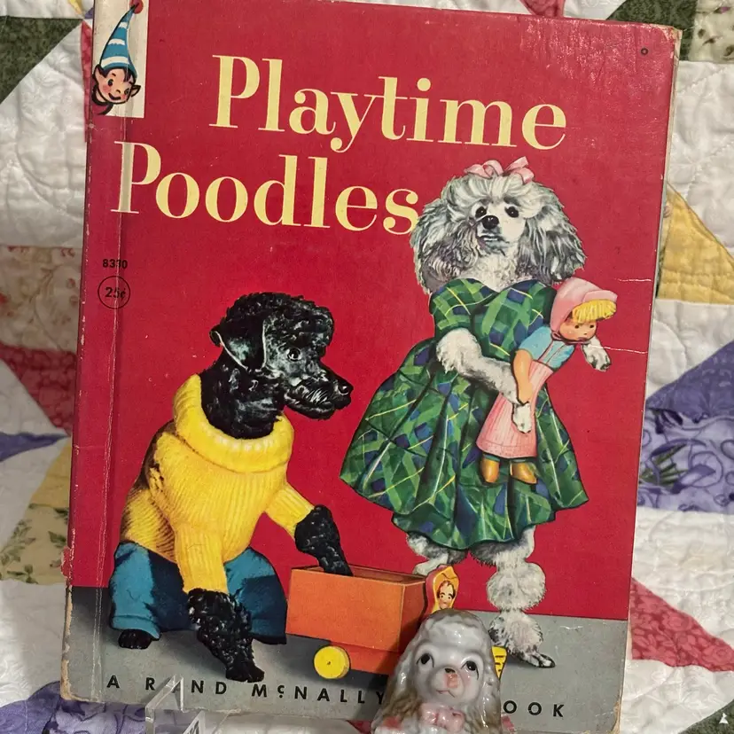 Enchanting story about Suzette and BoBo, a girl and boy poodle that gets lots of presents from dad who is traveling. Included is poodle figurine- Japan