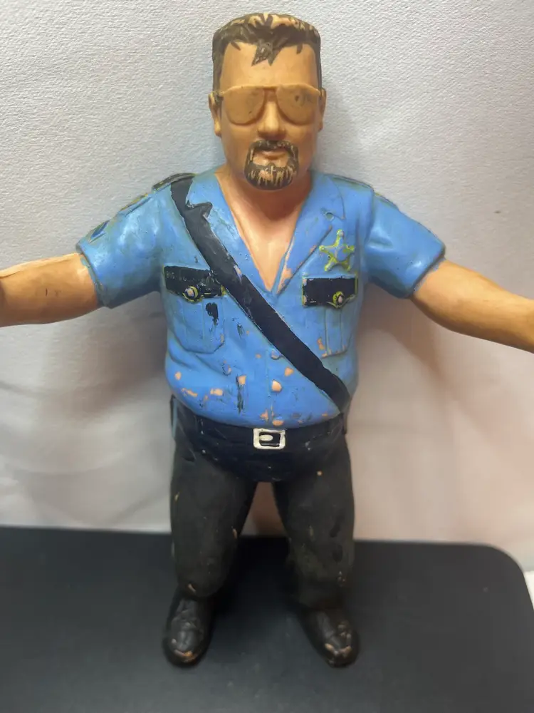 1989 Titan Toys WWF Big Boss Man standing 8” tall and solid rubber.