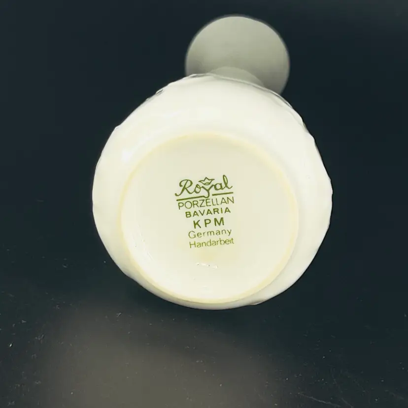 👉KPM stands for Königliche Porzellan-Manufaktur or Royal Porcelain Factory 👉8”H x 2 1/4“W 1 1/2” Opening 👉Shipping Overages <$1 Refunded 👉No Chips or Cracks 👉Review Photos for Best Condition Description 👉Sold as Shown FUN FACT: KPM is a renowned German porcelain manufacturer founded in 1763 by King Frederick II of Prussia.