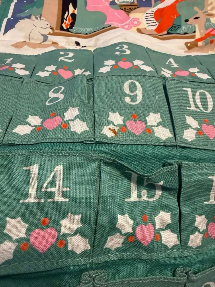 80’s Avon countdown to Christmas calendar. Missing mouse. 24” tall GVC one minor stain on back untreated.
